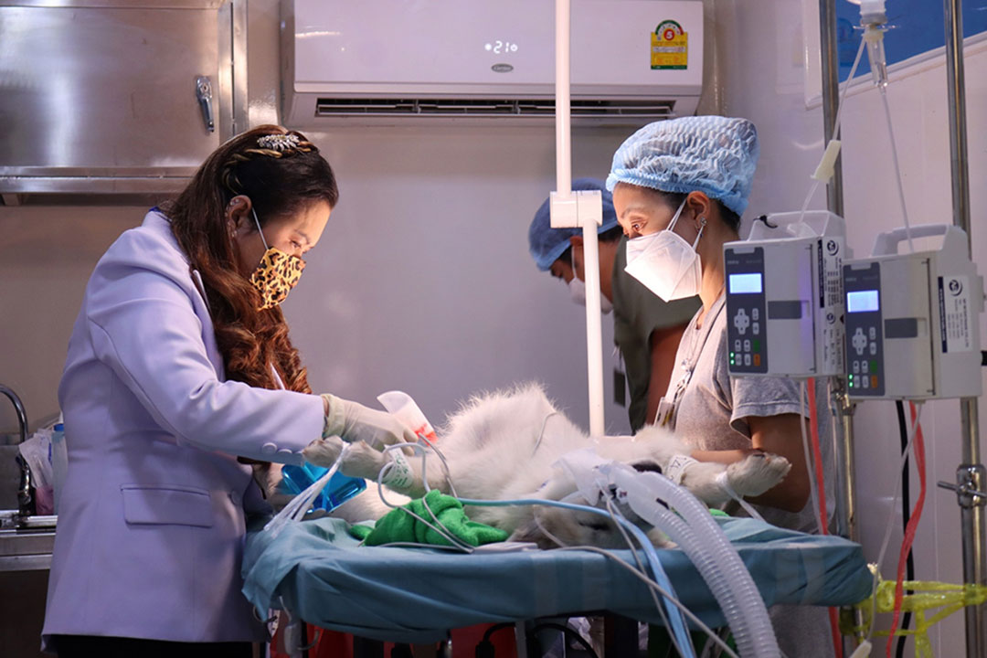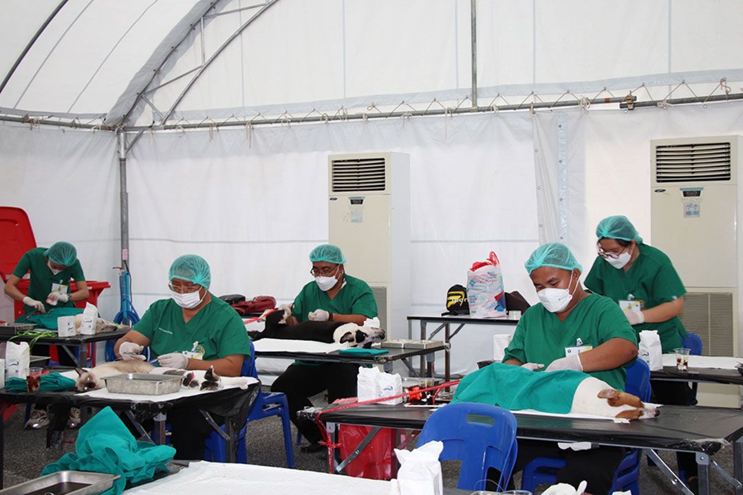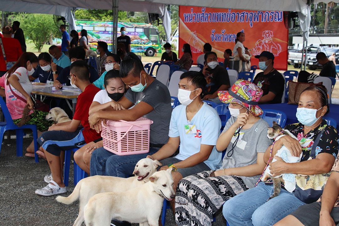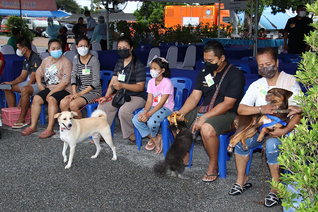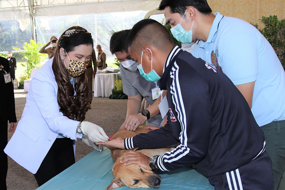 โอกาสนี้ ทรงฉีดวัคซีนป้องกันโรคพิษสุนัขบ้า พร้อมพระราชทานป้ายห้อยคอสุนัข ในโครงการ “สัตว์ปลอดโรค คนปลอดภัย จากโรคพิษสุนัขบ้าตามพระปณิธาน ฯ” จากนั้น ทรงงานวิสัญญีทางสัตวแพทย์ ร่วมกับทีมสัตวแพทย์อาสาจุฬาภรณ์ ผ่าตัดทำหมันและรักษาโรคต่าง ๆ ที่พบในสุนัข อาทิ ภาวะมดลูกอักเสบ เนื้องอกบริเวณผิวหนัง ภายในรถผ่าตัดเคลื่อนที่ที่มีมาตรฐานความปลอดภัยสูง เพื่อให้การรักษาเป็นไปอย่างมีประสิทธิภาพ และถูกต้องตามหลักวิชาการทางสัตวแพทย์ สนับสนุนการดำเนินงานเพื่อสร้างพื้นที่ปลอดโรคพิษสุนัขบ้าในจังหวัดชลบุรีอย่างยั่งยืน