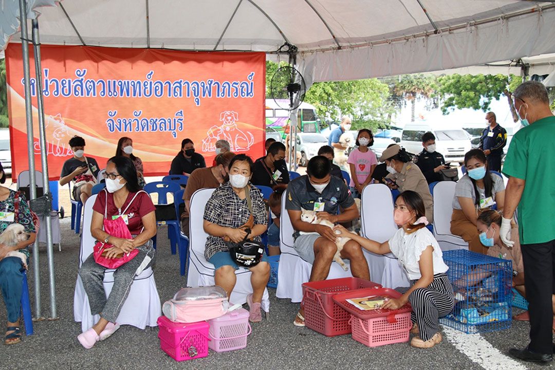สำหรับจังหวัดชลบุรี ได้ดำเนินงานสนองพระดำริฯ เพื่อฉีดวัคซีนป้องกันโรคพิษสุนัขบ้า และผ่าตัดทำหมันให้กับสัตว์เลี้ยงของประชาชนและสัตว์ไร้บ้านในพื้นที่ โดยในปี 2566 ปศุสัตว์จังหวัดชลบุรี มีเป้าหมายดูแลสุขภาพสัตว์จำนวน 10,000 ตัว ครอบคลุมพื้นที่ 11 อำเภอ 98 ชุมชน ปัจจุบันดำเนินการในพื้นที่เป้าหมายไปแล้ว 7,900 ตัวทั้งนี้ ตลอดระยะเวลาการออกหน่วยสัตวแพทย์อาสาจุฬาภรณ์ ระหว่างวันที่ 8-13 กรกฎาคม นี้ มีสุนัขและแมวทั้งที่มีเจ้าของและไม่มีเจ้าของเข้ารับบริการฉีดวัคซีนป้องกันโรคพิษสุนัขบ้า รวมจำนวน 541 ตัว และมีการผ่าตัดทำหมัน รวมจำนวน 773 ตัว