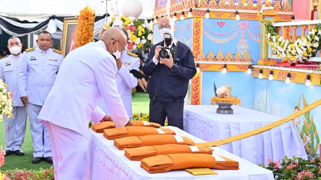 โอกาสนี้ คณะเจ้าภาพร่วมทอดผ้าไตรบังสุกุล จากนั้น นายสุทธิพงษ์ จุลเจริญ ปลัดกระทรวงมหาดไทย ทอดผ้าไตรบังสุกุลบนภูษาโยงหน้าหีบศพ เสร็จแล้ว เจ้าประคุณสมเด็จพระมหาวีรวงศ์ กรรมการมหาเถรสมาคม เลขานุการสมเด็จพระสังฆราช ผู้ช่วยเจ้าอาวาสวัดราชบพิธสถิตมหาสีมาราม ราชวรวิหาร อัญเชิญผ้าไตรประทานของเจ้าพระคุณสมเด็จพระอริยวงศาคตญาณ สมเด็จพระสังฆราช สกลมหาสังฆปริณายก ทอดบนภูษาโยงหน้าหีบศพ นายชูชาติ ฉุยกลม ประจำสำนักพระราชวังพิเศษ ระดับ 10 เป็นผู้อัญเชิญพระไตรพระราชทานของสมเด็จพระกนิษฐาธิราชเจ้า กรมสมเด็จพระเทพรัตนราชสุดาฯ สยามบรมราชกุมารี ทอดบนภูษาโยงหน้าหีบศพ โดยเมื่อถึงเวลาตามหมายกำหนดการสำนักพระราชวัง เจ้าประคุณสมเด็จพระพุฒาจารย์ เจ้าคณะใหญ่หนตะวันออก กรรมการมหาเถรสมาคม เจ้าอาวาสวัดไตรมิตรวิทยาราม วรวิหาร ประกอบพิธีพระราชทานเพลิงศพ พระราชวิจิตรการ (ภักดิ์ อตฺถกาโม) น.ธ. เอก, ป.ธ.8 อดีตเจ้าอาวาสกิตติมศักดิ์วัดเศวตฉัตร วรวิหาร นายชูชาติ ฉุยกลม ประจำสำนักพระราชวังพิเศษ ระดับ 10 อัญเชิญดอกไม้จันทน์พระราชทานของสมเด็จพระกนิษฐาธิราชเจ้า กรมสมเด็จพระเทพรัตนราชสุดาฯ สยามบรมราชกุมารีวางหน้าหีบศพ นายสุทธิพงษ์ จุลเจริญ ปลัดกระทรวงมหาดไทย อัญเชิญดอกไม้จันทน์ประทานของเจ้าพระคุณสมเด็จพระอริยวงศาคตญาณ สมเด็จพระสังฆราช สกลมหาสังฆปริณายก วางหน้าหีบศพ จากนั้น พระสังฆาธิการ พระเถระ คณะผู้บริหาร ข้าราชการ และพุทธศาสนิกชน ร่วมวางดอกไม้จันทน์ เป็นอันเสร็จพิธี
