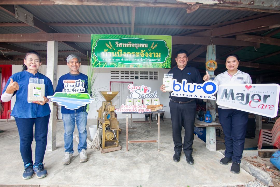 เมเจอร์ โบว์ล กรุ้ป จับมือ มูลนิธิ เมเจอร์ แคร์ เดินหน้าขับเคลื่อนการดำเนินธุรกิจควบคู่ไปกับการมีส่วนร่วมกับชุมชนภายใต้ชื่อ “Care for Social” ส่งความห่วงใย สร้างรายได้ สู่ชุมชม พร้อมร่วมเป็นส่วนหนึ่งในการสนับสนุนเกษตรกรชาวนาไทย เพื่อให้เกษตรกรได้ขายข้าวสารส่งตรงถึงมือผู้บริโภคโดยไม่ผ่านคนกลาง และเป็นการสร้างรายได้ให้ชุมชนสามารถพึ่งพาตนเองได้ในระยะยาว โดยสนับสนุนการซื้อเมล็ดข้าวพันธุ์ดี “ข้าวกข 43” จากชุมชนวิสาหกิจบ้านบึงกระจังงาม จ.นครสวรรค์ ข้าวออร์แกนิกคุณภาพดีและมีสารอาหารที่มีคุณภาพสูงสู่ครัวของ บลูโอ ริธึม แอนด์ โบว์ล เพื่อนำมาทำเป็นเมนูอาหารต่าง ๆ และให้พื้นที่วางจำหน่ายข้าวถุง 2 กิโลกรัม