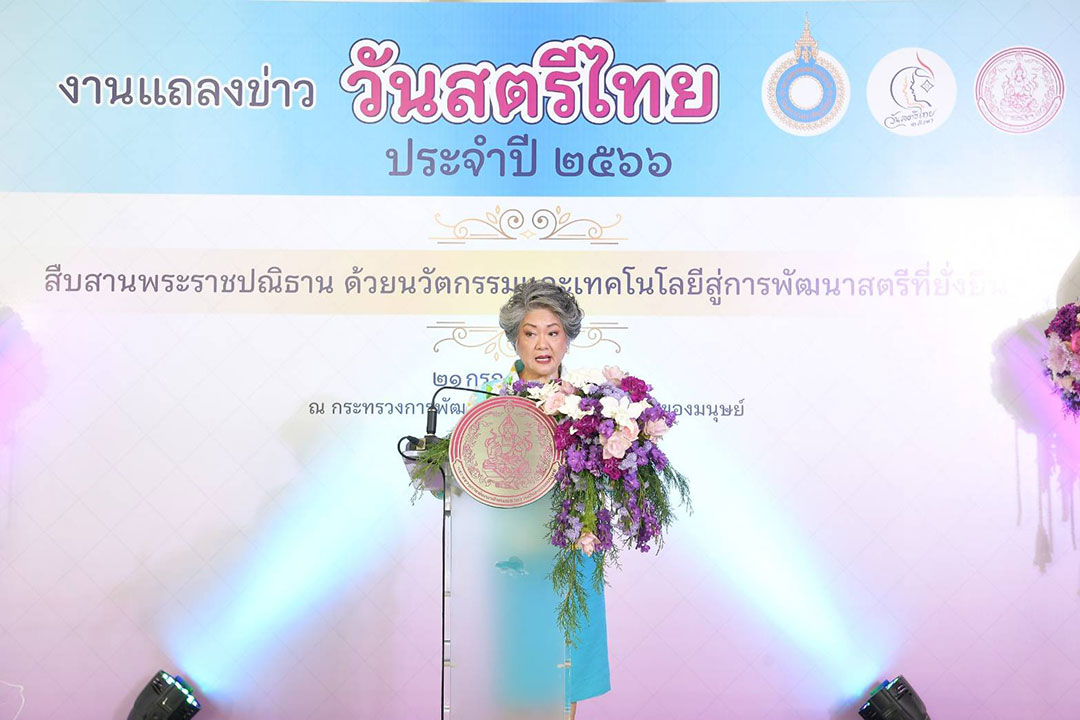 นายอนุกูล กล่าวต่อว่า กระทรวงการพัฒนาสังคมและความมั่นคงของมนุษย์ (พม.) ตระหนักถึงพลังของสตรีไทยซึ่งมีส่วนสําคัญในการขับเคลื่อนสังคมไทยในทุกมิติ ทั้งยังเป็นพลังสำคัญในการธํารงรักษาความมั่นคงของครอบครัว ดังนั้น เพื่อยกย่องเชิดชูสตรีไทย และส่งเสริม สนับสนุนให้สตรีไทยได้มีความรู้ ความสามารถเพิ่มขึ้น เป็นพลังในการพัฒนาสังคมและประเทศชาติ จึงได้ร่วมกับ สภาสมาคมสตรีแห่งชาติ ฯ ซึ่งเป็นภาคีเครือข่ายสำคัญในการร่วมพัฒนาศักยภาพของสตรีไทยมาอย่างต่อเนื่อง กําหนดจัดงาน “วันสตรีไทย” ประจําปี ๒๕๖๖ ขึ้นภายใต้แนวคิด “สืบสานพระราชปณิธาน ด้วยนวัตกรรมและเทคโนโลยีสู่การพัฒนาสตรีที่ยั่งยืน” เพื่อรวมพลังองค์กร เครือข่ายสตรีทั่วประเทศ ด้วยความร่วมมือจากหน่วยงานภาครัฐ ภาคเอกชน ในการพร้อมใจกันกระทำความดีเพื่อถวายเป็นพระราชกุศล และกระตุ้นให้ทุกภาคส่วนในสังคมตระหนักถึงความสำคัญของวันสตรีไทย