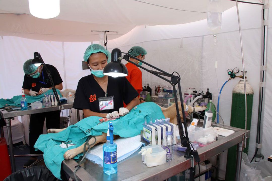 อีกทั้ง โปรดให้ทีมสัตวแพทย์อาสาจุฬาภรณ์ บูรณาการความร่วมมือกับหน่วยงานต่าง ๆ ในจังหวัดที่เกี่ยวข้อง ซึ่งมีทีมสัตวแพทย์และเจ้าหน้าที่ จากสำนักงานปศุสัตว์เขต 8 สำนักงานปศุสัตว์จังหวัดนครศรีธรรมราช เทศบาลนครนครศรีธรรมราช มหาวิทยาลัยวลัยลักษณ์ และมูลนิธิเพื่อสุนัขในซอย จังหวัดภูเก็ต (Soi Dog) ดำเนินงานผ่านกิจกรรมต่าง ๆ อย่างครบวงจร เพื่อทำการรักษา ฉีดวัคซีน และผ่าตัดทำหมันควบคุมจำนวนประชากรสุนัขและแมวทั้งที่มีเจ้าของและไร้เจ้าของซึ่งเป็นสัตว์จรจัดจากบริเวณโดยรอบ 5 วัด 6 ชุมชน โดยไม่เสียค่าใช้จ่ายทั้งนี้สุนัขจรจัดที่มาเข้ารับบริการในครั้งนี้ จะนำไปดูแลต่อที่ศูนย์พักพิงสุนัขจรจัดในโครงการสัตว์ปลอดโรค คนปลอดภัย จากโรคพิษสุนัขบ้า ตามพระปณิธานฯ ในพื้นที่ภาคใต้ ที่มหาวิทยาลัยวลัยลักษณ์ อำเภอท่าศาลา จังหวัดนครศรีธรรมราช เพื่อเข้าสู่การบริหารจัดการแก้ปัญหาสุนัขจรจัดในพื้นที่อย่างเป็นระบบ