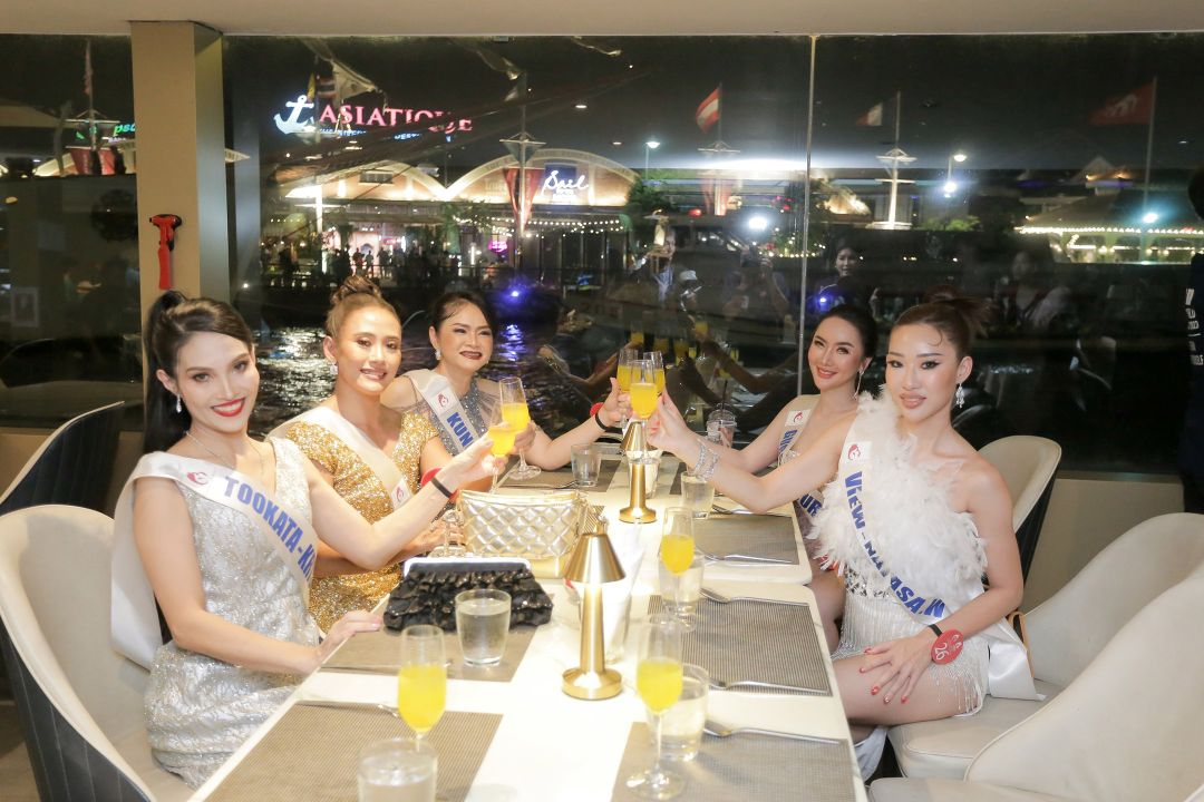 สาวใหญ่ไฟแรงเฟร่องานนี้ ผู้อำนวยการกองประกวด อย่าง “คิตตี้-กิจติพร นันท์ตานนท์ และหมอกี้- อังคนางค์ชากีร่า”ขอคืนกำไล ให้รางวัลสาวงามกับความตั้งใจในการร่วมกิจกรรมโดยจัดเอ็กซ์คลูซีฟปาร์ตี้ดี ดินเนอร์หรู กลางแม่น้ำเจ้าพระยา ล่องนาวาไปกับ Viva Alangka Cruiseโดยบริษัท STS TRAVEL งานนี้ ยกทีมงาน พร้อมสาวงาม กว่า 60ชีวิต นัดหมายขึ้นเรือที่ เอเชียทีค เมื่อเวลา 19.30 น แต่ก่อนหน้านั้น ขอจัดภาพถ่ายสวยๆ กันสักหนึ่งเซตใหญ่เป็น ออเดิร์ฟก่อนล่องเรือ ดินเนอร์ชมความสวยงามสองฝั่งแม่น้ำเจ้าพระยา คงไม่บอกเลยน่ะว่าสาวๆ จะจัดเต็มแค่ไหน เห็นได้จากการใช้เวลาในการเดินไปท่าเรือ เจอนักท่องเที่ยวขอถ่ายรูปตลอดทาง ก็กินเวลาโขอยู่