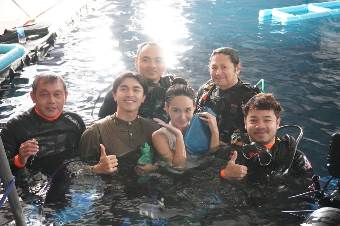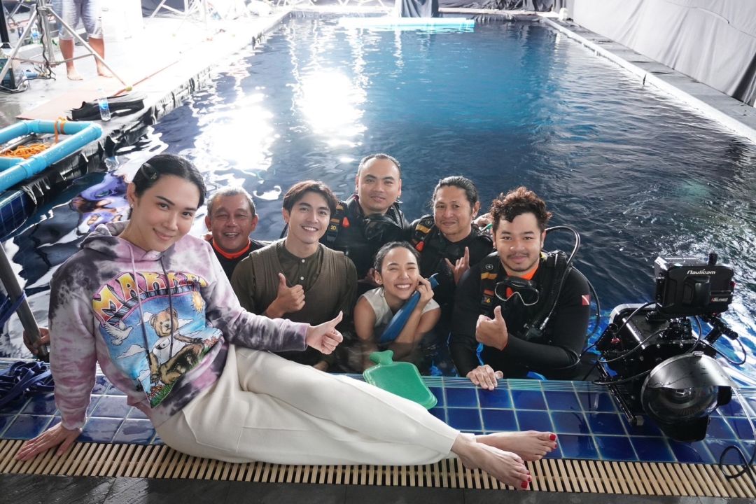 ด้านพระเอกสายละมุน “ภณ ณวัสน์” เป็นตัวแทนหมู่บ้านพูดถึงการถ่ายทำครั้งนี้ว่า “เป็นซีนที่ออกอากาศไม่นาน แต่ถ่ายทำนานมาก (หัวเราะ) ต้องใช้หลายมุม หลายคัท เป็นการถ่ายทำที่ทุ่มสุดตัวให้ภาพออกมาดีที่สุดเป็นการถ่ายทำใต้น้ำที่จริงจังครั้งแรกของภณเลย อุปสรรคเยอะมากเพราะผมต้องใส่ตัวถ่วงให้มันจมไม่ลอยขึ้นมา มันหนักมาก แทนที่จะกลั้นหายใจได้นาน กลายเป็นตกใจ แต่หลังๆก็เริ่มชิน อุปสรรคอีกอย่างที่ตามมาคือความหนาวครับ กลัวตะคริวขึ้น ส่วนจะฟินแค่ไหนต้องไปรอชม เพราะเป็นซีนที่ปั้นแสงสวยมาก มีซีนหมุนตัวที่ทำยากมาก เป็นการทำงานร่วมกันของผมกับน้องญดา ที่ต้องสื่อถึงกันและทำด้วยกัน ไม่อยากให้พลาดซีนนี้เลย”