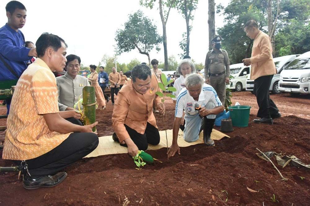 โอกาสนี้ นายสุทธิพงษ์ จุลเจริญ ปลัดกระทรวงมหาดไทย รับมอบเกียรติบัตรคนดีของแผ่นดินจาก ดร.สมหมาย วันสอน ประธานมูลนิธิบัณฑิตคืนถิ่น และเยี่ยมชมพื้นที่ปลูกป่าในเนื้อที่ดินกว่า 200 ไร่ ที่ประกอบด้วยพันธุ์ไม้หลากหลายชนิด อาทิ ทุเรียนภูเขาไฟ ไม้ยางพารา ลำไย มะขาม มะไฟ ส้มโอ ขนุน พะยูง มะค่า ยางนา กฤษณา สัก ตะเคียน ที่ถือเป็นต้นแบบของเกษตรกรผู้ปลูกป่าที่มีการสอดแทรกแนวคิดการทำเกษตรที่แตกต่าง พร้อมเพิ่มมูลค่าที่เหมาะกับการศึกษา การทำเกษตรกับธรรมชาติ และปรัชญาชีวิตการดำเนินชีวิตแบบพอเพียง อยู่แบบพึ่งพิงธรรมชาติอย่างลงตัว พร้อมทั้งร่วมปลูกต้นมหาดไทย (ต้นมะหาด) ไม้ยืนต้นขนาดใหญ่ ผลกินได้ มีรสหวานอมเปรี้ยว ใบ ยอด ดอก และเปลือก มีสรรพคุณทางยา เป็นยาขับพยาธิตัวตืดและพยาธิไส้เดือน หรือใช้ละลายน้ำ ทาแก้ผื่นคัน แก่นไม้เนื้อดี โตเร็ว นำไปสู่การผลิตข้าวของเครื่องใช้