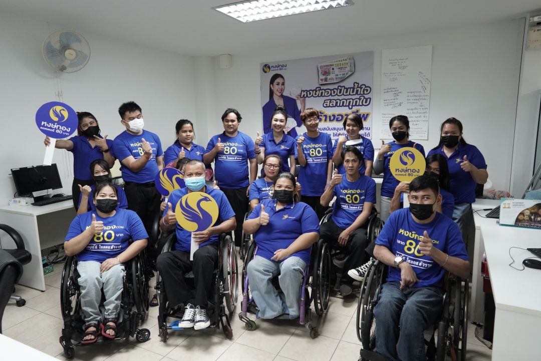 “โครงการหงษ์ทองปันน้ำใจสลากทุกใบสร้างอาชีพ” โครงการนี้ไม่ใช่แค่การสนับสนุนช่วยเหลือผู้ค้ารายย่อยและผู้พิการในการช่วยซื้อลอตเตอรี่ค้างแผง (ลอตเตอรี่ที่คาดว่าจะขายไม่หมดแผง) หงษ์ทอง.COM ยังได้เข้าสนับสนุนโครงการสร้างอาชีพให้กับครอบครัวผู้พิการและผู้ด้อยโอกาส ของมูลนิธิคุณพ่อเรย์(มหาไถ่) ที่ จังหวัดชลบุรี โดยทางมูลนิธิร่วมกับหงษ์ทองและบริษัทชั้นนำอีกหลายรายในประเทศไทย จัดทำโครงการสร้างอาชีพอย่างยั่งยืนให้กับครอบครัวผู้พิการ เด็กกำพร้า และผู้ด้อยโอกาส