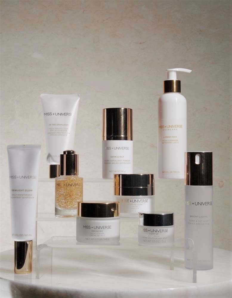 Miss Universe Skincare คือกลุ่มผลิตภัณฑ์บำรุงผิวที่มีประสิทธิภาพสูงและมุ่งเน้นผลลัพธ์จากการใช้จริง ออกแบบขึ้นโดยผู้เชี่ยวชาญเพื่อมุ่งปลดล็อกความงามและความมั่นใจจากภายในของผู้ใช้ทุกคน ภายใต้การวิจัยอย่างพิถีพิถันเพื่อตอบโจทย์ความต้องการผลิตภัณฑ์ดูแลผิวอันหลากหลายของผู้บริโภคทั่วโลก มุ่งแก้ไขปัญหาและความกังวลเกี่ยวกับผิวในด้านต่างๆ เช่น รอยดำ การเปลี่ยนสีของผิว และปัญหาสิว โดยแต่ละผลิตภัณฑ์จะประกอบด้วยส่วนผสมของ MU7C+, Cosmetic Drone Technology และ Functional Peptides เพื่อสร้างผลลัพธ์ที่ต้องการตามลักษณะการใช้ของแต่ละผลิตภัณฑ์ โดยมีผลิตภัณฑ์ทั้งหมด 9 รายการ ได้แก่ Fresh Face Milky Cleanser, Bright Lights Toner, Dewlight Glow Daily Moisturizer, Golden Glow Face Serum, In the Spotlight Sunscreen, Satin & Silk Micro Exfoliant Powder, Diamond Glow Mask, Light Up Eye Cream และ Dream Big Night Cream