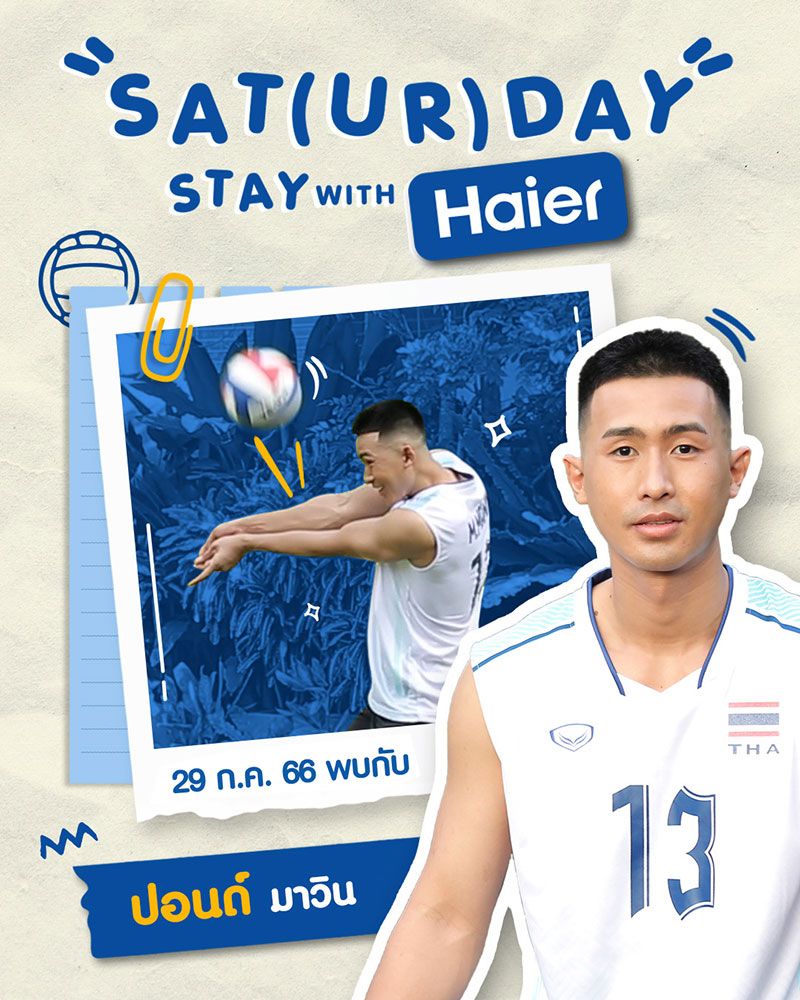 ไฮเออร์ (Haier) ผู้นำด้านผลิตภัณฑ์และนวัตกรรมเครื่องใช้ไฟฟ้าระดับโลกและแบรนด์เครื่องใช้ไฟฟ้าอันดับ 1 ของโลกติดต่อกัน 14 ปีซ้อน ได้ปล่อย Viral วิดีโอ ภายใต้คอนเซ็ปต์ SAT(UR)DAY Stay With Haier ที่เป็นการนำเสนอไลฟ์สไตล์สำหรับวันพักผ่อนแบบง่าย ๆ สบาย ๆ ในแบบฉบับของ 5 นักกีฬามากความสามารถของไทย โดยมีเครื่องใช้ไฟฟ้าไฮเออร์ที่มาพร้อมนวัตกรรมสุดล้ำเป็นตัวช่วยที่จะทำให้ชีวิตง่ายยิ่งขึ้น