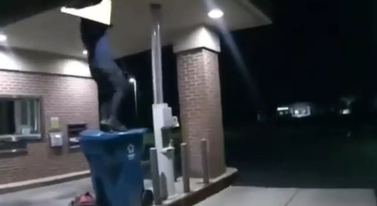 โลกโซเชียลแห่แชร์คลิปภาพการจับกุมหัวขโมยที่ก่อเหตุย่องเบาเข้าไปขโมยของในธนาคารในเมืองฮูรอนของสหรัฐฯ เมื่อช่วงเช้ามืดเวลาราวตี 2 ของวันพฤหัสบดีที่ผ่านมา ตามเวลาในท้องถิ่น โดยจากคลิปจะเห็นหัวขโมยวัย 27 ปีรายนี้ พยายามปีนลงมาจากฝ้าเพดานของธนาคาร ขณะที่ตำรวจ 2 นายกำลังไปดักรออยู่แล้ว เนื่องจากได้รับแจ้งเตือนโดยสัญญาณกันขโมยของธนาคาร โดยกล้องติดตัวเจ้าหน้าที่ตำรวจได้ถ่ายคลิปภาพตั้งแต่คนร้ายรายนี้เปิดฝ้าเพดานออกมา และหย่อนตัวลงมาจากด้านบน จนหล่นลงไปในถังขยะพอดิบพอดี และเป็นจังหวะเดียวกับที่ตำรวจเข้าไปแสดงตัวเพื่อจับกุม