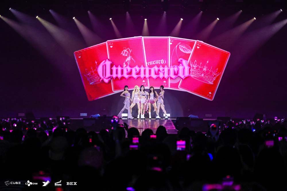 โดยงานนี้ได้ “BEX” (เบ็ก) บริษัทอีเว้นท์ออกาไนเซอร์ในเครือเวิร์คพอยท์กรุ๊ป เป็นผู้จัดงาน ร่วมกับ “YJ PARTNERS” (วายเจ พาร์ทเนอร์ส), “PROUD2” (พราวด์ทู) และ “Cube Entertainment” (คิวบ์ เอนเตอร์เทนเมนต์)ที่เคยสร้างความประทับใจให้กับแฟนๆ มาแล้วในหลายคอนเสิร์ต และครั้งนี้ก็เช่นกัน เพราะจัดเต็ม Production แสง สี เสียงตลอดการแสดง โดยสาวๆ ลำดับการแสดงมาเป็นอย่างดีไม่มีแผ่วตั้งแต่เริ่ม ขนทุกเพลงฮิตที่การันตียอดวิวมากกว่า 100 ล้านวิว! มาฝากอย่างครบถ้วนอย่าง “LATATA”, “Nxde”, “TOMBOY” และเพลงซิงเกิ้ลล่าสุดที่เต้นกันได้ทั้งฮอลล์อย่าง “QUEENCARD”! โดยในงานคอนเสิร์ตได้มีช่วง Stage Solo ของน้องๆ ทั้ง 5 คน“Miyeon” (มิยอน) เพลง DRIVE/“Minnie”(มินนี่ เมมเบอร์ชาวไทย) เพลง DAHLIA/“Soyeon”(โซยอน) เพลง Psycho/“Shuhua” (ชูฮวา) เพลง Boys และ “Yuqi” (อูกี) เพลง Could It Be อีกด้วย นับเป็นโชว์สุดตราตรึงใจให้กับแฟนๆ เป็นอย่างมาก เพราะน้องๆได้โชว์ทั้งพลังเสียง และความสามารถพิเศษของแต่ละเมมเบอร์ในสไตล์ที่แตกต่างกัน