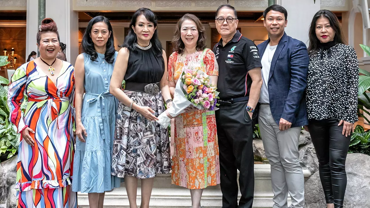 @ณิชยา ชัยวิสุทธิ์ มอบช่อดอกไม้อวยพรในโอกาสวันเกิดให้ ดร.สุภี พงษ์พานิช โดยมี เจตนา พงษ์พานิช, อาธร ชินาลัย, สาลินี ปันยารชุน, กุลปราณี สาวะรีพล และ อารีรัตน์ กฤษณะสมิต มาร่วมอวยพรด้วยความชื่นมื่น ที่โรงแรมแกรนด์ ไฮแอท เอราวัณ วันก่อน.@
