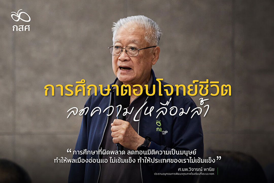 การศึกษาที่ตอบโจทย์ชีวิต ลดความเหลื่อมล้ำ คือการศึกษาที่หนุนพลังความเป็นมนุษย์ การศึกษาที่ผิดพลาดลดทอนมิติความเป็นมนุษย์ ทำให้พลเมืองอ่อนแอ ไม่เข้มแข็ง ทำให้ประเทศของเราไม่เข้มแข็ง อันนี้สำคัญมาก และลึกซึ้งตีความได้เยอะ ผมมีความเชื่อว่า มิติความป็นมนุษย์ยิ่งใหญ่ มีพลังสูงมาก สิ่งที่เรียกว่าการศึกษา การเรียนรู้ เป็นการช่วยให้แต่ละคน ดึงเอามิติความเป็นมนุษย์ พลังความเป็นมนุษย์ออกมา โดยร่วมกับเพื่อน ร่วมกันครู พ่อแม่ คนรอบตัว ที่เรียกว่าเป็น Social Learning เป็นเรื่องใหญ่มาก สามารถจะมีการคิดริเริ่มสร้างสรรค์มากมาย การศึกษาตอบโจทย์ชีวิตลดความเหลื่อมล้ำ ต้องยึดหยุ่น มีความหลากหลาย ไม่ใช่มีรูปแบบตายตัว และหนุนการเป็นผู้ก่อการ เป็นการศึกษาตั้งแต่ครรภ์มารดาถึงเชิงตะกอน ไม่ใช่แค่ที่คนเข้าไปอยู่ใน โรงเรียนหรือสถาบันเท่านั้น และเป็นการศึกษา ที่ทุกคนหมุนวงจรการเรียนรู้ของตัวเองเพื่อฝึกให้ตัวเอง เป็น Learning Person และทำให้ เป็น Learning Society อย่างต่อเนื่องตลอดไป