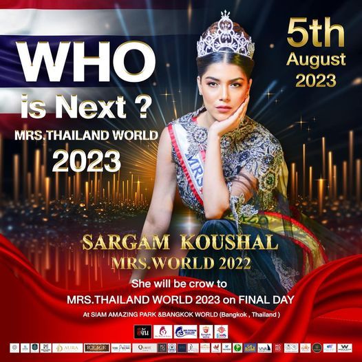 และที่พิเศษสุดไปกว่านั้น รอบแรก ในวันพฤหัสบดี ที่ 3 สิงหาคม 2566 รอบผ้าไทย (เซอร์ไพรส์ ไปกับแขกรับชิญสุดพิเศษ Mrs.Sargam Koushal (ซาร์กัม คูชาล)Mrs World 2022 )บินตรง เพื่อมาร่วมเดินแฟชั่นโชว์ ผ้าไทยโดยเฉพาะณ บางกอกเวิลด์..สวนสยาม(สะพานพุทธจำลอง) และมาเป็นเกียรติ ในรอบชิงชนะเลิศ ในวันที่ 5 สิงหาคม 2566นี้ อีกด้วย