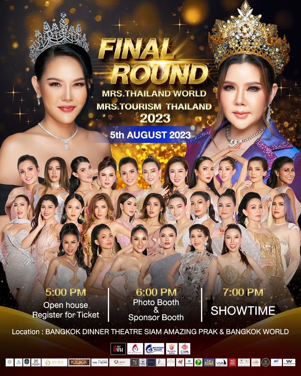 เตรียมตัวให้มั่น เตรียมเสียงให้พร้อม ไปร่วมเชียร์ เหล่าสาวใหญ่ ไฟแรงเฟร่อชิง2มงกุฎใหญ่ Mrs.Thailand World 2023 และ Mrs.TourismThailand 2023.มงจะลงที่ใคร ร่วมลุ้นไปด้วยกัน ในวันที่ 5 สิงหาคม 2566นี้ ณSiam Amazing Park & Bangkok World (Bangkok Dinner Theatre บางกอก ดินเนอร์ เธียเตอร์)