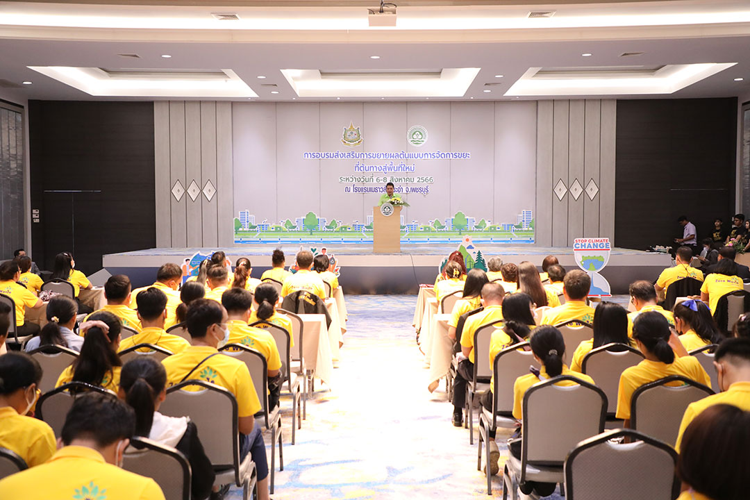 กระทรวงทรัพยากรธรรมชาติและสิ่งแวดล้อม (ทส.) โดยกรมส่งเสริมคุณภาพสิ่งแวดล้อม (สส.) จัดอบรมส่งเสริมการขยายผลต้นแบบการจัดการขยะที่ต้นทางสู่พื้นที่ใหม่ ระหว่างวันที่ 6 – 8 สิงหาคม 2566 ณ โรงแรมเมธาวลัย ชะอำ จังหวัดเพชรบุรี เพื่อเสริมสร้างความรู้ ความเข้าใจ และพัฒนาศักยภาพเครือข่าย รวมถึงขยายผลพื้นที่เรียนรู้ชุมชนและโรงเรียนเครือข่ายต้นแบบการจัดการขยะที่ต้นทาง ให้เกิดความยั่งยืนและครบวงจร Zero Waste Society