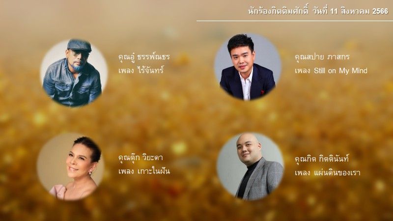 โดยในวันศุกร์ที่ 11 สิงหาคมนี้ จะเริ่มการแสดงเป็นวันแรก ได้รับเกียรติจากศิลปิน ได้แก่ คุณอู๋-ธรรพ์ณธร ปาลกะวงศ์ ณ อยุธยา, คุณสปาย-ภาสกรณ์ รุ่งเรืองเดชาภัทร์, คุณตุ๊ก-วิยะดา โกมารกุล ณ นคร, คุณกิต-กิตตินันท์ ชินสำราญ, อี๊ฟ-พุทธิดา ศิระฉายา, คุณบิลลี่ โอแกน, คุณคิงส์-พิเชษฐ์ บัวขำ, คุณแก้ม-วิชญาณี เปียกลิ่น