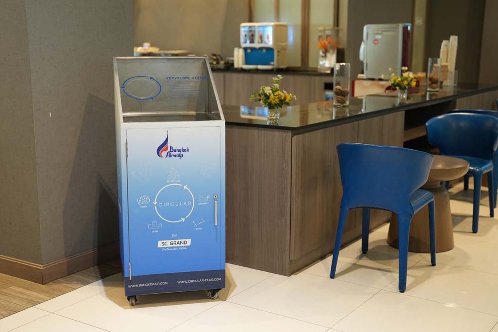 นอกจากนี้ ยังส่งเสริมการมีส่วนร่วมสำหรับผู้โดยสารให้ได้ตระหนักถึงการจัดการขยะอย่างถูกวิธีตั้งแต่ต้นทาง ผ่านการจัดตั้งจุด Drop Box สำหรับรับคืนขวดน้ำดื่มพลาสติก PET ไร้ฉลากภายในห้องรับรองผู้โดยสารบูทีคเลานจ์ ซึ่งจะส่งต่อให้กับ “เซอร์คูลาร์ อินดัสทรี้”เพื่อนำไปเข้าสู่กระบวนการแปลงเป็นเส้นใยพลาสติกสำหรับการผลิตเสื้อผ้าโดยจะเป็นการเพิ่มมูลค่าให้กับขยะพลาสติกและใช้ทรัพยากรของโลกให้เกิดประโยชน์สูงสุดไปพร้อมกัน”