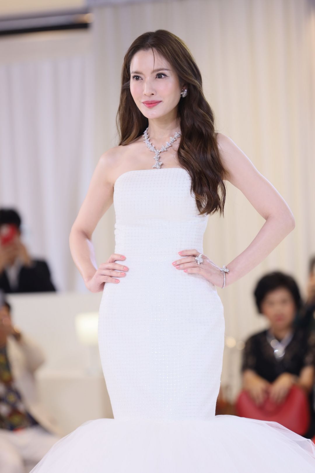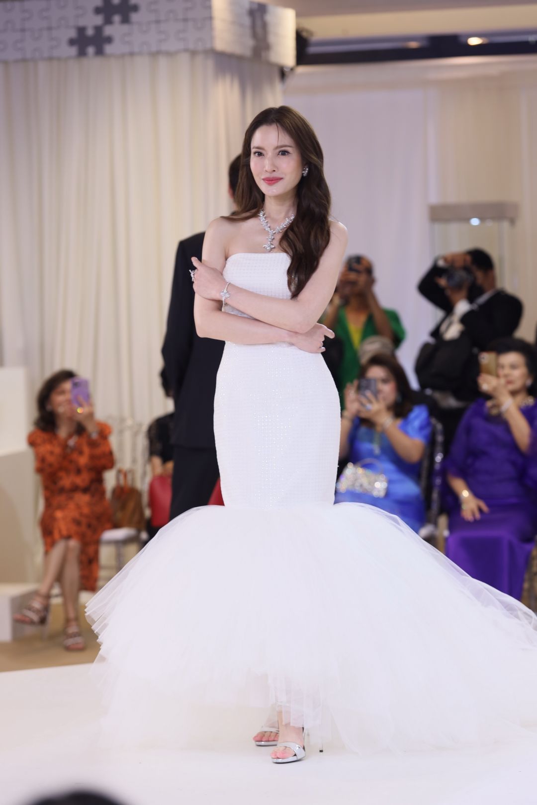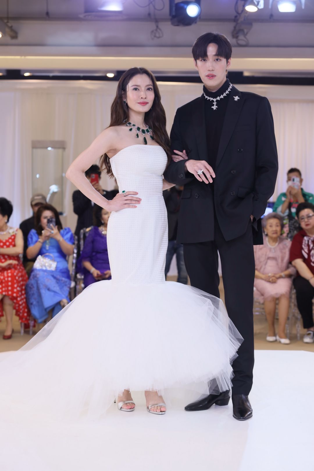 โดยงานนี้ตระการตาด้วยแฟชั่นโชว์เครื่องประดับสุดระยิบ ระยับ รับแสงไฟที่ยิ่งเปล่งประกายความงามจาก อัญมณี พร้อมเต็มไปด้วยความหมายในการออกแบบ เพื่อเติมเต็มความสุขจากสิ่งที่ขาดหาย โดยนางเอกสาว แอฟ ทักษอร สวมใส่เครื่องประดับ THE MISSING PIECE (เดอะ-มิซซิ่ง-พีส) สร้อยคอมรกตประดับเพชร ตัวแทนของความงดงามที่สมบูรณ์แบบ เต็มเปี่ยมไปด้วยความสุข ด้วยมรกตทรงหยดน้ำและทรงสี่เหลี่ยมหลากหลายเม็ด ซึ่งถูกรังสรรค์นำมาเรียงร้อยกัน เข้ากับความระยิบระยับของเพชรเปรียบเสมือนชิ้นส่วนสำคัญ เมื่อนำประกบอยู่ร่วมกันยิ่งช่วยส่งเสริมเสน่ห์และความงดงามราวกับชิ้นงานศิลปะอันล้ำค่า ที่คอยเติมเต็มความสุขและความสง่างาม ประกอบด้วย มรกต น้ำหนักรวม 333 กะรัต เพชร น้ำหนักรวม 41 กะรัต ทอง 18K White Gold น้ำหนักรวม 105 กรัม มูลค่า 88 ล้านบาท