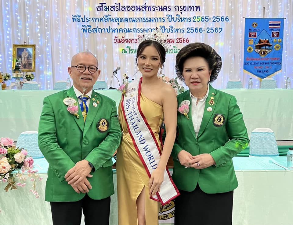 ล่าสุด “แม่ก้อย” เข้ารับมอบเข็มเกียรติยศจากองค์กร อันทรงเกียรติอย่าง“สโมสร ไลออนส์พระนครกรุงเทพ” ในงาน สถาปนาคณะกรรมการบริหาร 2566-2567เมื่อวันที่ 15 สิงหาคม 2566 ซึงจัดขึ้น ณ โรงแรม เอสดี อเวนิวเขตบางพลัดที่ผ่านมา ในฐานะผู้ทำคุณประโยชน์ให้กับสังคมและแสดงความยินดี กับ ตำแหน่ง 1st runner upMRS.THAILAND WORLD 2023