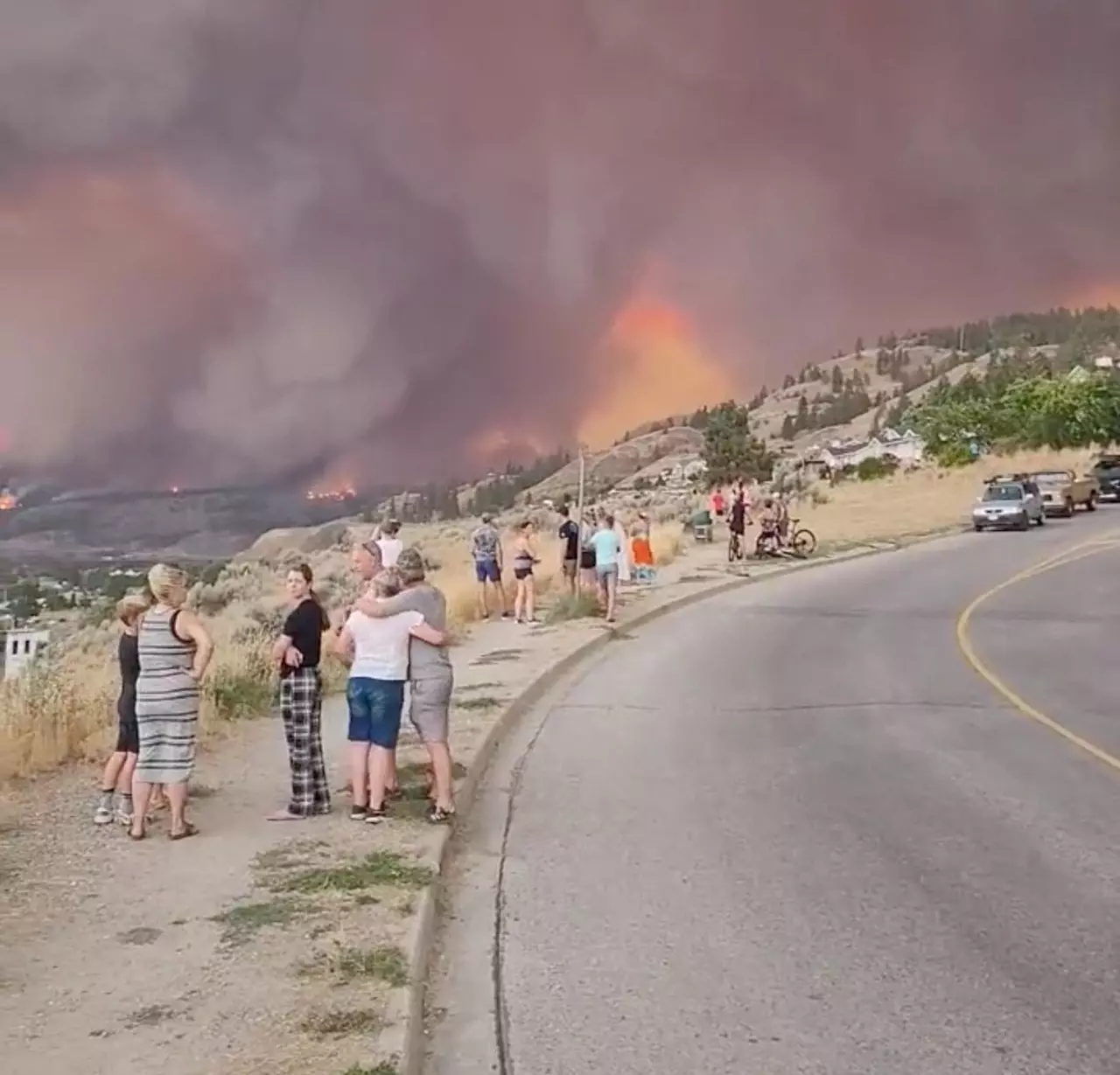 นายเจสัน โบรลุนด์ หัวหน้าสำนักงานดับเพลิงเวสต์ คีโลว์นา กล่าวว่า ไฟป่าเคลื่อนที่เร็วกำลังเข้าใกล้เมืองที่มีประชากรราว 150,000 คน และมีรายงานความเสียหายต่อสิ่งปลูกสร้างแล้ว รวมถึงที่เมือง เทรดเดอร์ส โคฟ ใกล้ทะเลสาบ โอคานากัน โดยชาวบ้านท้องถิ่นระบุว่า คนจำนวนหนึ่งต้องหนีลงทะเลสาบหลังไฟลามปิดเส้นทางหลบหนี