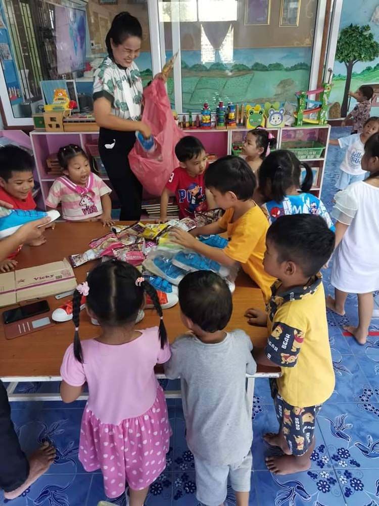 นักเรียนทุกคนฝากบอกว่าขอบคุณในน้ำใจที่กลุ่มของเรานำไปมอบให้ และดีใจมากที่ได้รองเท้าใหม่ กระเป๋าใหม่ และได้เครื่องกีฬาหลากหลาย และยังได้มีขนมอร่อยๆ รับประทาน มีเสื้อผ้าใหม่ไว้สวมใส่ นักเรียนหลายคนบอกว่าจะนำของกินที่ได้ไปฝากน้องที่บ้านบางคนบอกว่า หนูมีน้องอีกสองคน หนูขอขนมไปฝากน้องด้วยนะคะ ซึ่งทางเราก็จัดให้ด้วยความยินดี