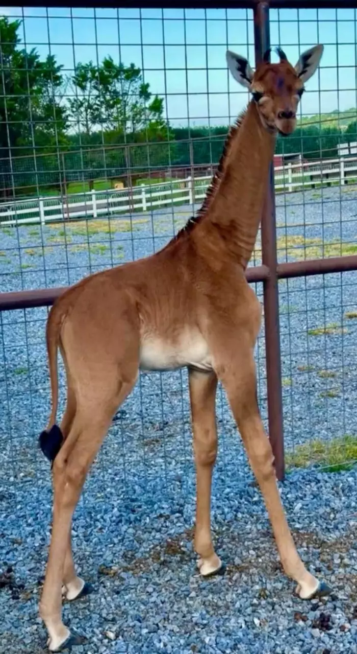 สวนสัตว์ไบรท์ สวนสัตว์เอกชนในไลม์สโตน รัฐเทนเนสซี ทางภาคตะวันออกเฉียงเหนือของสหรัฐฯ ต้อนรับสมาชิกใหม่เป็นลูกยีราฟเพศเมีย ซึ่งลืมตามาดูโลกเมื่อวันที่ 31 กรกฎาคมที่ผ่านมา แต่ที่น่าประหลาดใจก็เป็นเพราะเจ้าลูกยีราฟตัวนี้กลับมีเอกลักษณ์ไม่เหมือนใครตรงที่ตัวของมันเป็นสีน้ำตาลล้วน โดยไม่มีลวดลายตามลำตัวเหมือนกับยีราฟตัวอื่นๆ