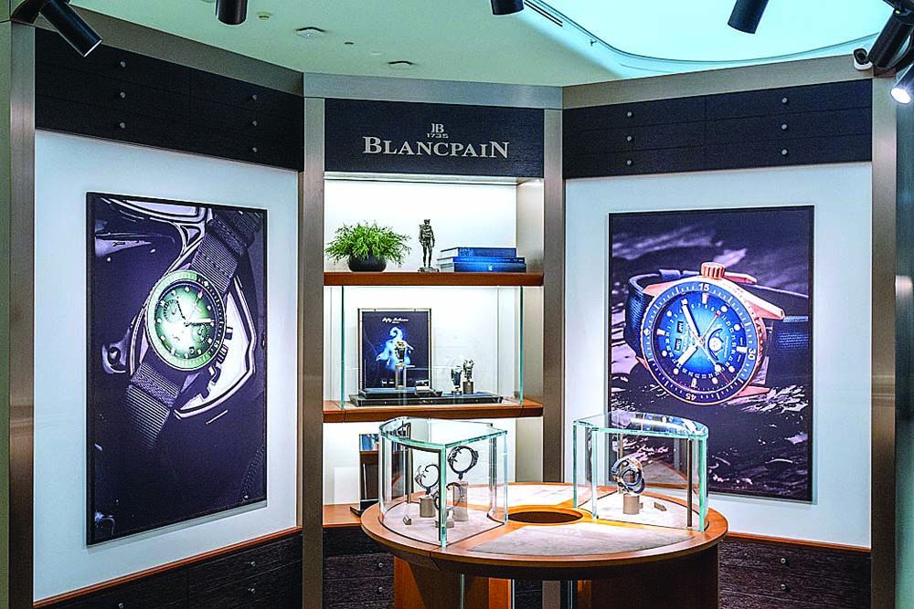 Blancpain พาคุณต้องมนต์วิเศษของเรือนเวลาแห่งกาลนิรันดร์ในแต่ละคอลเลคชั่นผ่านวิสัยทัศน์ของแบรนด์ที่ปูรากฐานจากวัฏจักรอันเป็นต้นกำเนิดของทุกสรรพ สิ่งนั่นก็คือธรรมชาติที่ไม่มีจุดเริ่มต้น ไม่มีจุดสิ้นสุด เป็นนิรันดร์เหนือกาลเวลา อันประกอบไปด้วยธาตุสำคัญ 4 อย่างคือ ดิน น้ำ ลม และไฟ ซึ่งเชื่อมโยงโดยตรงกับคอลเลคชั่นของ Blancpainได้เป็นอย่างดี ซึ่งภายใน pop-up store แบ่งออกเป็น 4 ส่วนด้วยกันเพื่อนำเสนอนาฬิกาในแต่ละคอลเลคชั่นได้แก่ คอลเลคชั่น “Villeret” เชื่อมโยงกับ “ดิน”, คอลเลคชั่น “Fifty Fathoms” เชื่อมโยงกับ “น้ำ”, คอลเลคชั่น “Air Command”เชื่อมโยงกับ “ลม” และคอลเลคชั่น“Ladybird” เชื่อมโยงกับ “ไฟ” โดย pop-up store แห่งนี้มีดีไซน์หรูหราแต่ก็เรียบง่าย ถ่ายทอดผ่านอัตลักษณ์และความเชี่ยวชาญอันล้ำค่าจากรุ่นสู่รุ่น ให้ผู้ที่ครอบครองเรือนเวลา Blancpain ได้สัมผัสนิยามบทใหม่ นาฬิกา Blancpain แต่ละเรือนคือมาสเตอร์พีซที่หลอมรวมความยืนยงข้ามผ่านกาลเวลา เปรียบเสมือนศิลปะอันเป็นเอกลักษณ์ไม่เหมือนใครและเปี่ยมไปด้วยคุณค่า ซึ่งคือคุณค่าที่หยั่งรากลึกอยู่ในทุกๆ สิ่งที่ Blancpain รังสรรค์ขึ้น