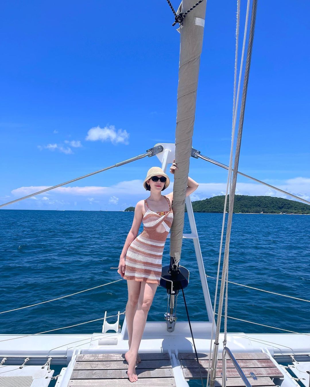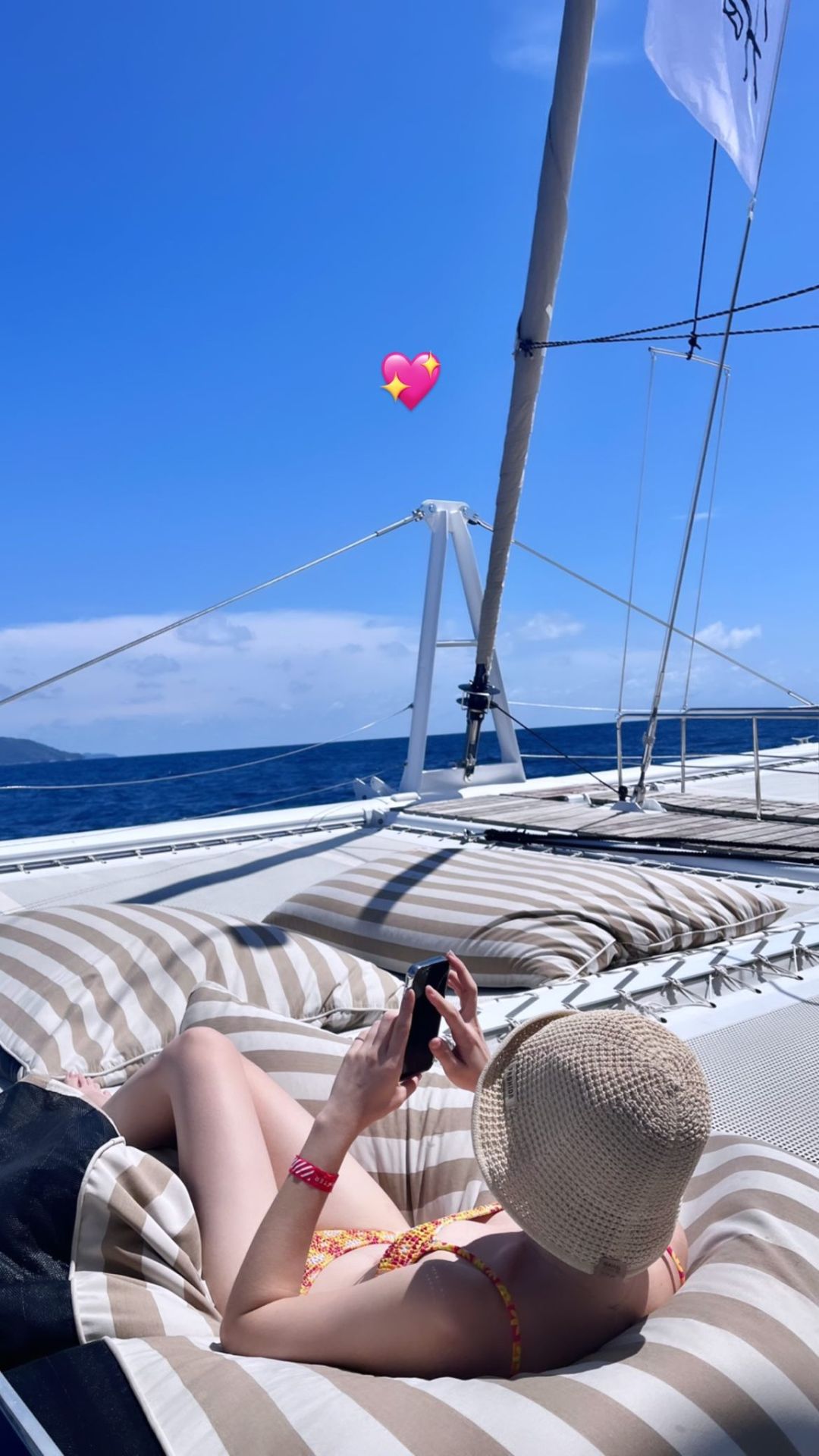 แจกความสดใส! ‘แมท ภีรนีย์’สวมบิกินีนอนอาบแดดบนเรือ