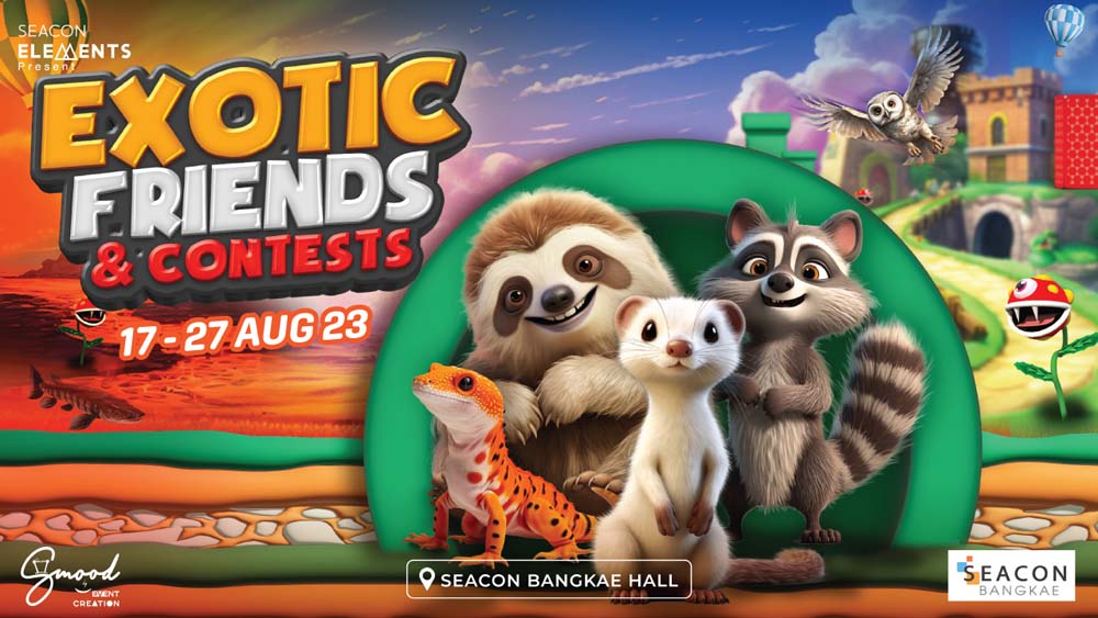 ชวนชมการประกวดสัตว์สุดแปลก ครั้งแรกในไทย ตุ๊กแก, อีเห็น, ปลาช่อน, ด้วงและ Forpus Run ในงาน “EXOTIC FRIENDS& CONTESTS” ถึง 27 ส.ค. ที่ ศูนย์สรรพสินค้าซีคอน บางแค ถนนเพชรเกษม