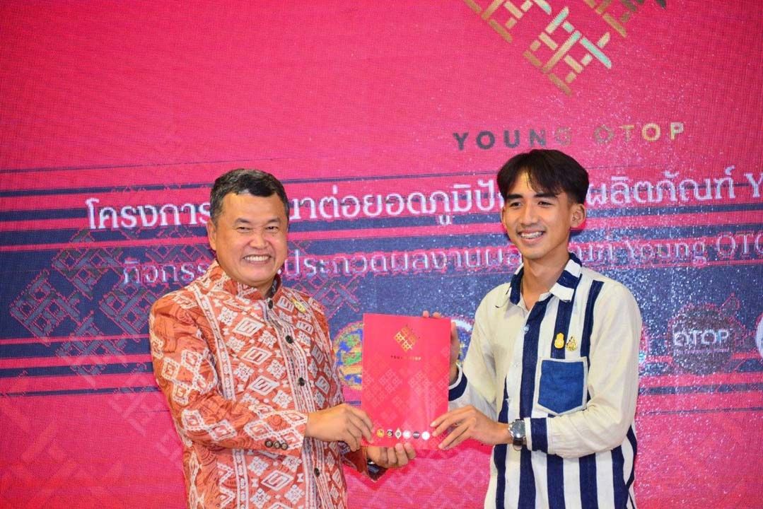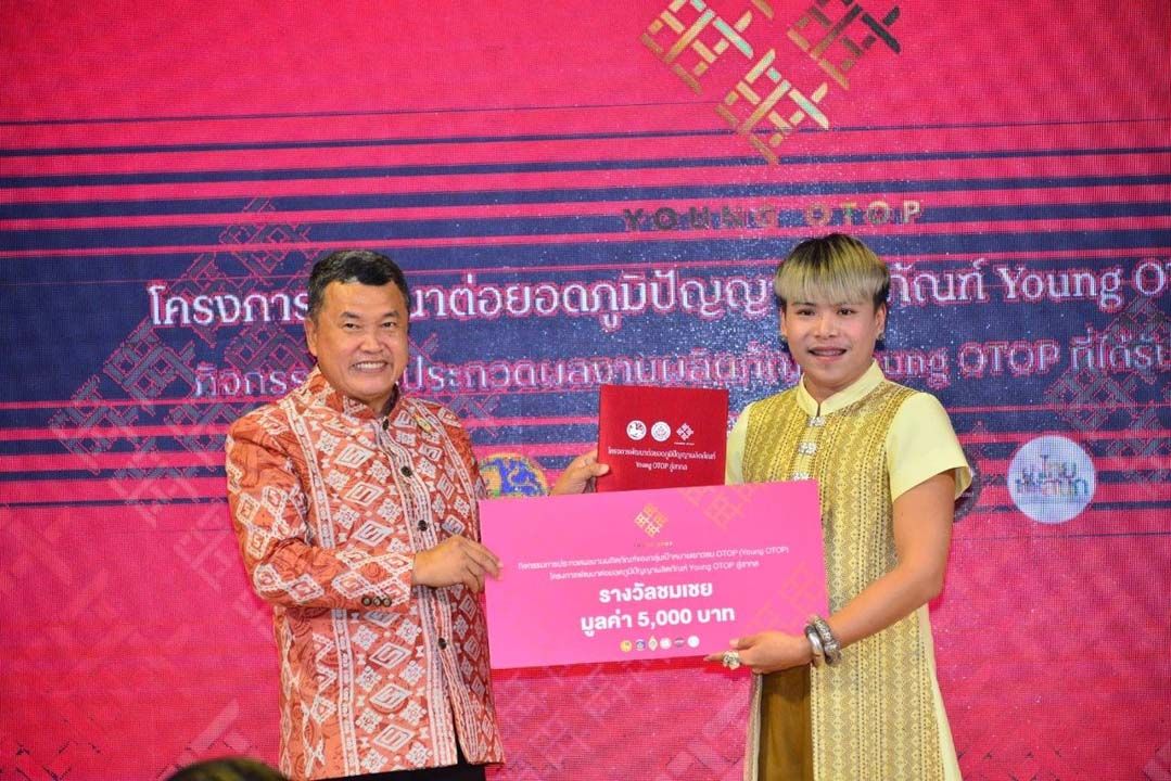 โอกาสนี้ นายสุทธิพงษ์ จุลเจริญ ปลัดกระทรวงมหาดไทย มอบโล่และเงินรางวัลแก่ผู้ที่ชนะการประกวดผลงานผลิตภัณฑ์ Young OTOP โดยรางวัลชนะเลิศ ได้แก่ นายเนติพงศ์ กระแสโสม กลุ่มอาชีพทอเสื่อกกเนต จังหวัดชัยภูมิ รางวัลรองชนะเลิศอันดับหนึ่ง ได้แก่ นายธณกร สุขเมตตา ME-D นาทับ จังหวัดสงขลา รางวัลรองชนะเลิศอันดับสอง ได้แก่ นางสาวเปมิกา เพียเยง จังหวัดลพบุรี รางวัลชมเชย จำนวน 3 รางวัล ได้แก่ 1) นายวริศพล สีเทียม กลุ่มคุณโด่งผ้าทอน้ำอ่าง จังหวัดอุตรดิตถ์ 2) นางสาวดุจกมล จันทรเกษม Pawana Design จังหวัดเชียงใหม่ 3) นายกิตติศักดิ์ วิลันดร กลุ่มจักสานวัสดุธรรมชาติ จังหวัดหนองคาย และรางวัลพิเศษขวัญใจคณะกรรมการ จำนวน 4 รางวัล ได้แก่ 1) สามเณรสุธานน ทองคำ ห้องหัตถกรรม จังหวัดปัตตานี 2) นางสาวปริญญ์สิริ เขียวไกร กลุ่มผ้าทอลายมงคลมนตราธิกาญจน์ จังหวัดกาฬสินธุ์ 3) นายจิตรกร เล็กกุล อันดามันบาติกกระบี่ จังหวัดกระบี่ 4) นายธนัชชา ทองเหมาะ กลุ่มทอผ้าพื้นเมืองไทหล่ม จังหวัดเพชรบูรณ์ และมอบประกาศนียบัตรให้แก่ผู้แทนกลุ่มทอผ้าที่เข้าร่วมการประกวดผลงานผลิตภัณฑ์ Young OTOP ที่ได้รับการพัฒนา ตามโครงการพัฒนาต่อยอดภูมิปัญญาผลิตภัณฑ์ Young OTOP สู่สากล จำนวน 34 ราย