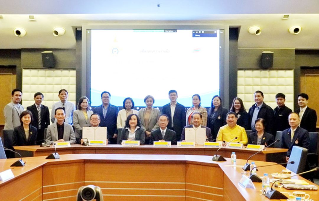 รศ.ดร.สมหมาย ผิวสอาด อธิการบดี มหาวิทยาลัยเทคโนโลยีราชมงคลธัญบุรี (มทร.ธัญบุรี) และนายเจริญชัย วงษ์จินดา รักษาราชการแทนผู้อำนวยการสถาบันวิทยาลัยชุมชน (ส.วชช.) ร่วมลงนามความร่วมมือ “การจัดการศึกษาและการสะสมหน่วยกิตในระบบธนาคารหน่วยกิต โดยมี ดร.สิริกร มณีรินทร์ นายกสภาสถาบันวิทยาลัยชุมชน และ รศ.ดร.นำยุทธ สงค์ธนาพิทักษ์ ที่ปรึกษามทร.ธัญบุรี ร่วมเป็นสักขีพยาน เมื่อวันก่อน ณ มทร. ธัญบุรี
