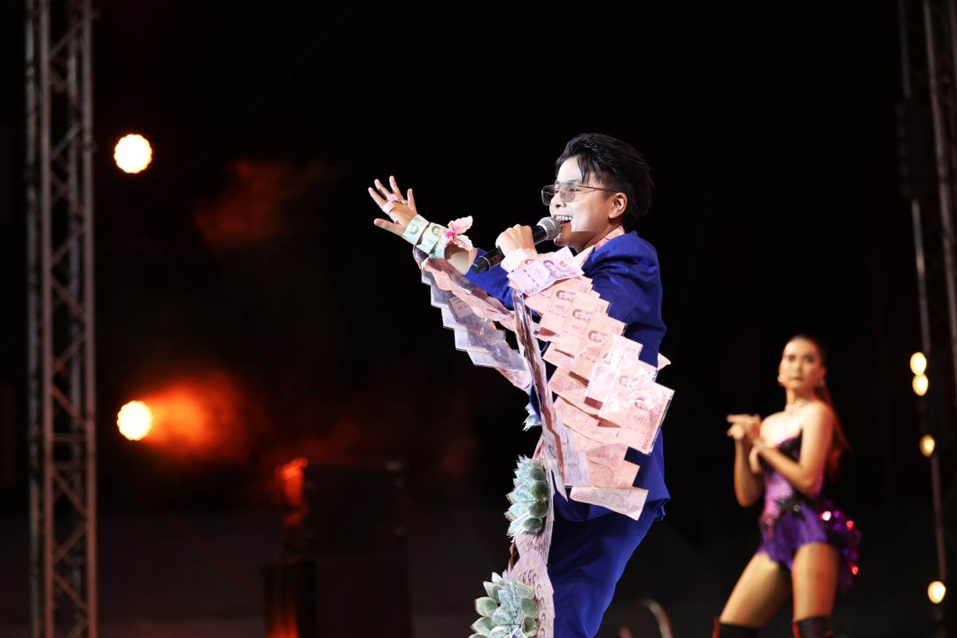 โดยได้ยกทัพศิลปินคุณภาพ นำโดย “เท่ง เถิดเทิง”, “โหน่ง ชะชะช่า”, “แจ๊ส JSPKK”, “ลำไย ไหทองคำ”, “เจนนี่-ลิลลี่ ได้หมดถ้าสดชื่น”, “เต้ย อภิวัฒน์”, “กานต์ ทศน”, “นัท ณวภัสร์”, “นัน อนันต์” พร้อมศิลปินเสริมเพิ่มความปังจากค่ายยุ้งข้าวเรคคอร์ดแบบจุก ๆ อาทิ 3 หนุ่ม RSF “ไรอัล กาจบัณฑิต – ซัน วงศธร – ฟอร์ม ชลพิพรรธน์”, ป๊อบปี้ ปรัชญาลักษณ์”, “วิทย์ สุวิทย์”, “กุ้ง จุฑาภรณ์”, “หมิว เขมจิรา”, “พลอย พลอยสวย”, “ต้นตาล ยุทธการณ์”, “ปุย ปรีญานุช” และ ศิลปินน้องใหม่ขวัญใจแม่ยกอย่างน้อง ‘’ลีโอ ไมค์หมดหนี้” สับเปลี่ยนหมุนเวียนกันขึ้นเวทีมอบความสุขในทั้ง 5 จังหวัด โดยมี “พัน พลุแตก” เป็นพิธีกรมอบความสุขตลอดทั้งงาน