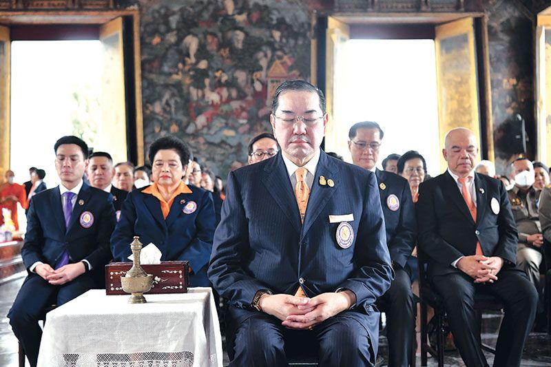 ศ.พิเศษ ดร.สุรเกียรติ์ เสถียรไทย พร้อม คณะกรรมการและผู้ร่วมพิธี พร้อมใจกัน สวดพระพุทธมนต์และเจริญจิตตภาวนา ถวายเป็นพระกุศล