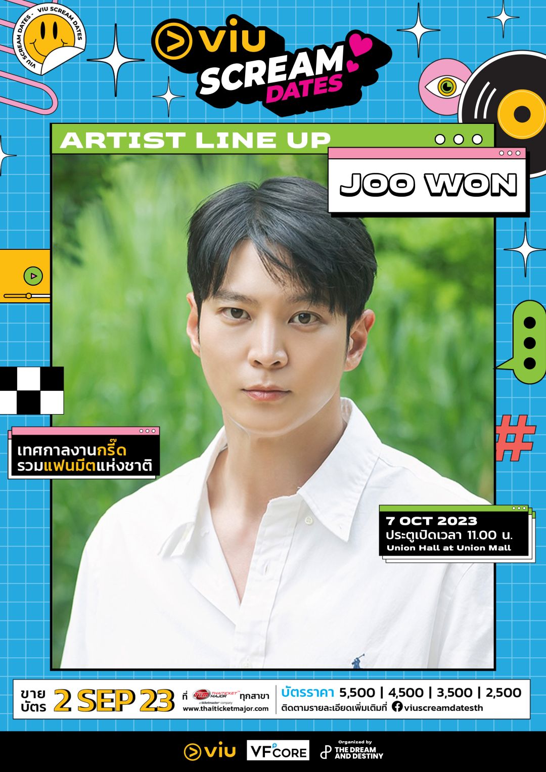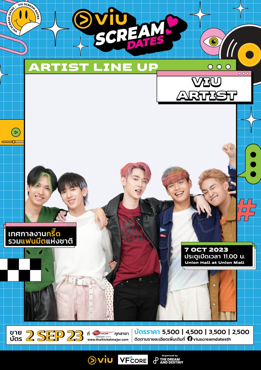 ไฮไลท์ของงาน “Viu Scream Dates 2023” คือการรวมตัวกันของศิลปินชื่อดังที่จะมาพร้อมโชว์สุดพิเศษที่ไม่เคยแสดงที่ไหนมาก่อน คอนเสิร์ต และกิจกรรมสุดเอ็กซ์คลูซีฟมากมายจากเหล่าคนดัง นำทัพโดย 2 นักแสดงเกาหลี จูวอน (Joo Won) นักแสดงหนุ่ม มากความสามารถ เจ้าของผลงานภาพยนต์และซีรีส์มากมาย อาทิ Stealer: The Treasure Keeper และ รยออุน (Ryeo Un) นักแสดงหนุ่มดาวรุ่งหุ่นแซ่บ จากซีรีส์ 18 Again, The Secret Romantic Guesthouse เสริมทัพด้วยซูเปอร์สตาร์ไทยจากบ้าน GMMTV ได้แก่ ไบรท์-วชิรวิชญ์, วิน-เมธวิน, นานิ-หิรัญกฤษฎิ์, ดิว-จิรวรรตน์ 4 นักแสดงนำจากซีรีส์ F4 Thailand: หัวใจรักสี่ดวงดาว BOYS OVER FLOWERS พร้อมด้วย 2 คู่จิ้นอย่าง ออฟ-จุมพล, กัน-อรรถพันธ์ และ เต-ตะวัน, นิว-ฐิติภูมิ รวมถึงนักแสดงหนุ่มหน้าหวานมากความสามารถอย่าง ฟลุ้ค-ณธัช จากซีรีส์เรื่องใหม่ในปีนี้ Shadow เงา/ล่า/ตาย และเหล่านักแสดง Viu Artist จากซีรีส์เรื่องใหม่ Close Friend โคตรแฟน ซีซัน 3 ต่อขบวนความปังด้วยศิลปิน T-POP ที่ขนไอดอลเจนใหม่มากันทั้ง เกิร์ลกรุ๊ป และ บอยแบนด์ อาทิ 4EVE, ATLAS , SIZZY, 4MIX, LYKN เป็นต้น