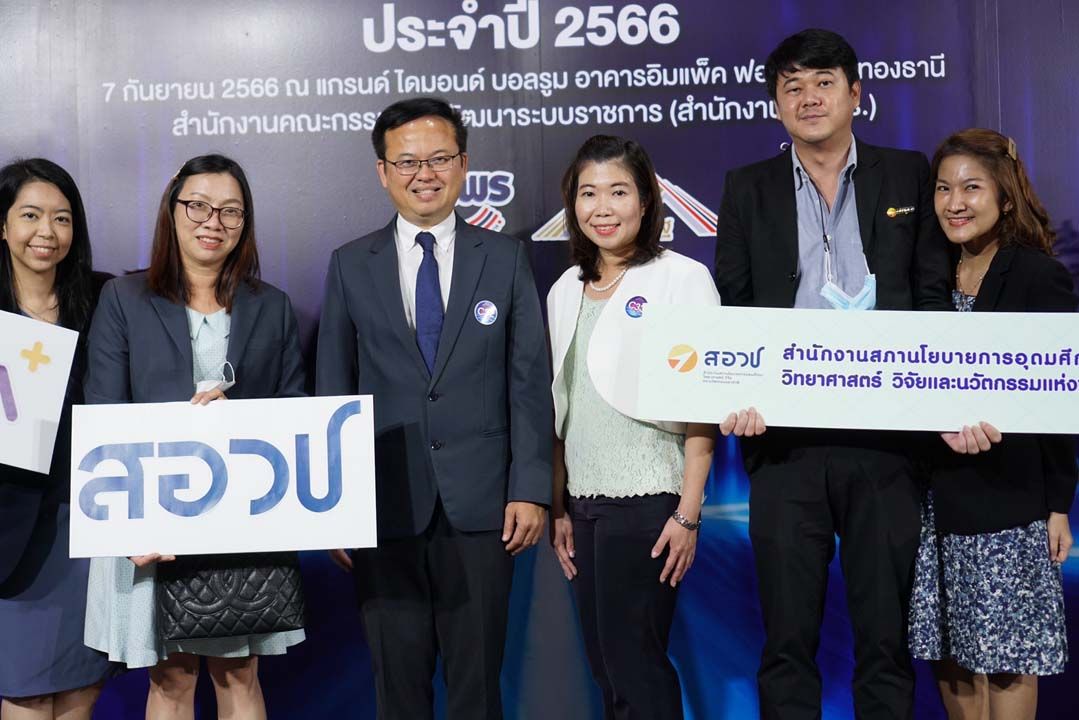เมื่อวันที่ 7 กันยายน 2566 ดร.กิติพงค์ พร้อมวงค์ ผู้อำนวยการสำนักงานสภานโยบายการอุดมศึกษา วิทยาศาสตร์ วิจัยและนวัตกรรมแห่งชาติ (สอวช.) นางสาวภาณิศา หาญพัฒนนันท์ ผู้อำนวยการฝ่ายนวัตกรรมอุดมศึกษาและการพัฒนาทักษะแห่งอนาคต พร้อมตัวแทนพนักงาน สอวช. เข้ารับมอบรางวัลเลิศรัฐ ประเภทบริการตอบโจทย์ตรงใจ ระดับดีเด่น ประจำปี 2566 จากสำนักงานคณะกรรมการพัฒนาระบบราชการ (กพร.) โดยโครงการที่ได้รับรางวัลในครั้งนี้คือ “แพลตฟอร์มพัฒนากำลังคนสมรรถนะสูงตอบการลงทุนของภาคผลิตและบริการ” หรือ แพลตฟอร์ม STEMPlus