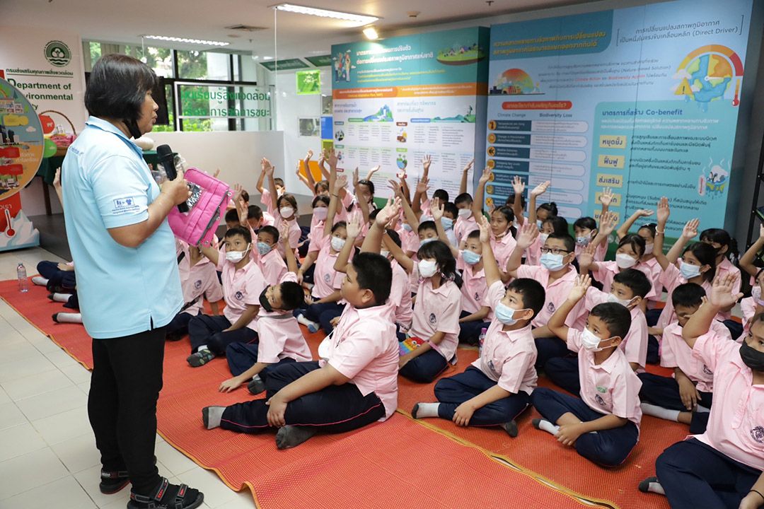 กรมการเปลี่ยนแปลงสภาพภูมิอากาศและสิ่งแวดล้อม มุ่งมั่นดำเนินการส่งเสริมให้ทุกฝ่ายร่วมเป็นส่วนหนึ่งในการบรรลุเป้าหมายความเป็นกลางทางคาร์บอน (Carbon neutrality) ภายในปี ค.ศ. 2050 และการปล่อยก๊าซเรือนกระจกสุทธิเป็นศูนย์ (Net Zero GHG emission) ภายในปี ค.ศ. 2065 โดยเฉพาะกลุ่มเด็กเยาวชนที่จะเติบโตมาเป็นผู้นำการเปลี่ยนแปลงทางสภาพภูมิอากาศและสิ่งแวดล้อมในอนาคต จึงได้จัดกิจกรรมถ่ายทอดองค์ความรู้ (ศึกษาดูงาน) ขึ้น โดยผู้ที่มาศึกษาดูงานจะได้เข้าร่วมกิจกรรม 5 สถานีการเรียนรู้ ดังนี้ 1. ถามตอบความรู้ด้านการเปลี่ยนแปลงสภาพภูมิอากาศ 2. Green Digital Library หนังสือดิจิทัลด้านสิ่งแวดล้อมและทรัพยากรของประเทศ 3. ปังปอนด์สอนน้องลดโลกร้อน 4. รู้จักโลกร้อนด้วยตัวเรา Global Warming Game และ 5. การจัดการขยะ เพื่อสังคมคาร์บอนต่ำ ซึ่งจะทำให้เด็กเยาวชนได้รับองค์ความรู้ เกิดความตระหนัก และปรับเปลี่ยนพฤติกรรมเป็นพลเมืองที่มีคุณภาพ รวมถึงจุดประกายความเป็นผู้นำการเปลี่ยนแปลงทางสภาพภูมิอากาศและสิ่งแวดล้อม เป็นนักสื่อสารที่ส่งสารต่อไปยังครอบครัว โรงเรียน และชุมชน นำพาทุกภาคส่วนเข้ามามีส่วนร่วมเพื่อให้บรรลุเป้าหมาย และกรมการเปลี่ยนแปลงสภาพภูมิอากาศและสิ่งแวดล้อมพร้อมเปิดบ้านต้อนรับเสมอ ซึ่งทุกท่านสามารถเข้ามาใช้บริการที่ศูนย์การเปลี่ยนแปลงสภาพภูมิอากาศและสิ่งแวดล้อมแห่งนี้ได้