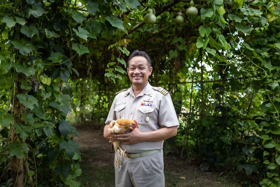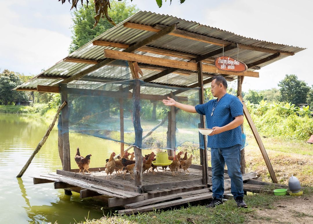ขวัญเรียม รินถา ผู้ใหญ่บ้าน บ้านนาได้น้อมนำพระราชดำริของสมเด็จพระกนิษฐาธิราชเจ้า กรมสมเด็จพระเทพรัตนราชสุดาฯ สยามบรมราชกุมารีมาประยุกต์ใช้ทั้งในเรื่องบ้านนี้มีรัก ปลูกผักกินเอง และทางนี้มีผลผู้คนรักกัน เป็นการปลูกผักริมรั้วริมทางที่อนุญาตให้คนอื่นเก็บเอาไปกิน หรือนำไปแลกเปลี่ยนกัน พร้อมทั้งให้ความสำคัญกับการเพาะปลูกผักสวนครัวอย่างถูกวิธี เรียนรู้ด้านการทำเกษตรกรรมให้เหมาะสมกับสภาพแวดล้อมและวิถีชีวิตของชาวบ้าน เนื่องจากชาวบ้านสามารถแบ่งปันผักจากสวนครัวของตนกับเพื่อนบ้านได้ ทำให้ทุกคนมีแหล่งอาหารสำหรับบริโภคโดยไม่ขาดแคลนตลอดทั้งปี และสามารถเข้าถึงแหล่งอาหารได้อย่างเท่าเทียมกัน ซึ่งการสร้างความมั่นคงทางอาหารที่ยั่งยืนนี้ต้องอาศัยความร่วมมือจากทั้ง 7 ภาคีเครือข่าย รวมไปถึงคณะกรรมการหมู่บ้านที่เป็นกลไกสำคัญในการพัฒนาหมู่บ้าน และด้วยความร่วมมือร่วมใจกันทำให้เกิดความรัก ความสามัคคีภายในหมู่บ้านอันเป็นต้นทุนสำคัญในการนำพาหมู่บ้านไปสู่หมู่บ้านยั่งยืนที่สามารถพึ่งพาตนเองได้อย่างแท้จริงในมิติอื่นๆ ต่อไป