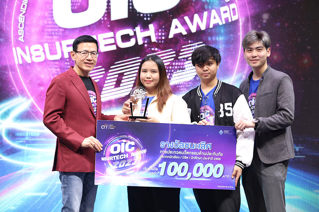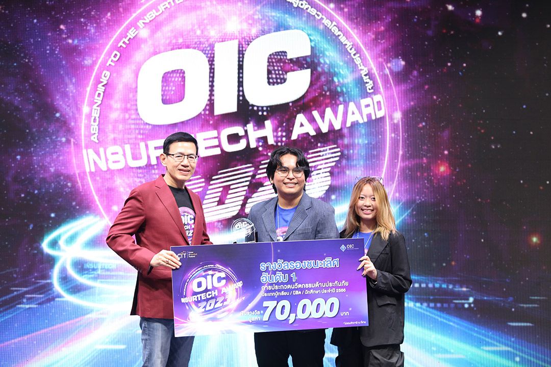 ผลการตัดสินการประกวดนวัตกรรมเทคโนโลยีด้านการประกันภัย “OIC InsurTech Award 2023” ประเภทนิสิต นักศึกษา รางวัลชนะเลิศ ได้แก่ ทีม การันTREE ภายใต้แนวคิด “การันTREE ตั้งต้นได้ เมื่อภัยมา” เป็น Application ให้บริการประกันภัยจากธรรมชาติแก่ต้นไม้ให้เกษตรกร โดยอำนวยความสะดวกให้เกษตรกรไม่ต้องชำระเบี้ยประกันภัย ซึ่ง Application จะช่วยในการประเมินปริมาณ Carbon Credit จากต้นไม้ของเกษตรกร และเชื่อมโยงไปยังตลาดกลางซื้อขาย Carbon Credit เพื่อรับรายได้มาจ่ายค่าประกันภัย ทำให้มีความคุ้มครองเพิ่มขึ้น ได้รับเงินรางวัลมูลค่า 100,000 บาท พร้อมโล่รางวัล รางวัลรองชนะเลิศอันดับ 1 ได้แก่ ทีม นานุดต่างดาว ภายใต้แนวคิด “ประกันรูปแบบใหม่ ที่ผสานกับเทคโนโลยีวิเคราะห์ปัญหาผิวหน้าแต่ละบุคคลเพื่อจะได้แก้ปัญหาได้ตรงจุด” ได้รับเงินรางวัลมูลค่า 70,000 บาท พร้อมโล่รางวัล รางวัลรองชนะเลิศอันดับ 2 ได้แก่ ทีม Lock Speed ภายใต้แนวคิด “Application สำหรับการติดตามพฤติกรรมการขับรถเชิงลึก พร้อมฟังก์ชั่นการบริการด้านการประกันภัย” ได้รับเงินรางวัลมูลค่า 50,000 บาท พร้อมโล่รางวัล รางวัลชมเชยลำดับที่ 1 ได้แก่ ทีม Harvest Moon ภายใต้แนวคิด “ลดความเสี่ยงให้กับเกษตรกร และเพิ่มโอกาสทำกำไรให้กับบริษัทประกันไปกับ Harvest Moon” ได้รับเงินรางวัล 15,000 บาท และรางวัลชมเชยลำดับที่ 2 ได้แก่ ทีม Siri มงคล ภายใต้แนวคิด “ผลิตภัณฑ์ประกันชีวิตแบบสะสมทรัพย์เพื่อบุตรสำเร็จการศึกษา เพิ่มทุนประกันภัยผ่านการออมของบุตร เพื่อสร้างประสบการณ์การออมตั้งแต่วัยเยาว์” ได้รับเงินรางวัล 15,000 บาท