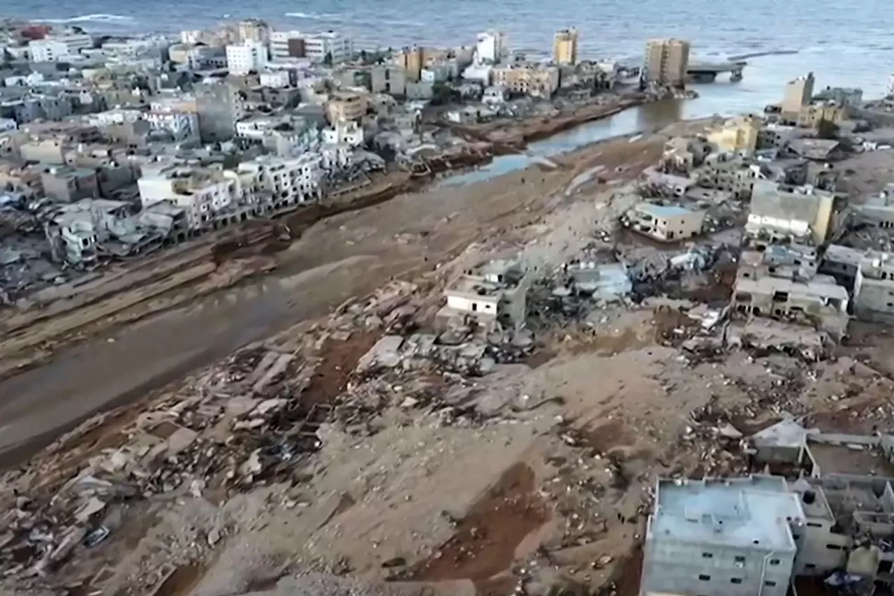 เมื่อ 15 กันยายน 2566 เดลี่เมล เผยคลิปใหม่ นาทีมวลน้ำมหาศาลทะลัก ราวสึนามิถล่มเมืองเดอร์นา ทางภาคตะวันออกของลิเบีย หลังเขื่อน 2 แห่งแตกจากสาเหตุรองรับมวลน้ำที่ไหลเข้าเขื่อนไม่ไหว เนื่องจากฝนตกหนักจากอิทธิพลพายุแดเนียล โดยคลิปใหม่จากกล้องวงจรปิด แสดงให้เห็นนาทีที่น่าสะพรึงกลัว มวลน้ำมหาศาลไหลบ่าท่วมถนนสายหนึ่งในเมืองเดอร์นา จนทำให้ท้องถนนที่เงียบสงบ กลายเป็นจมอยู่ใต้บาดาล ถูกน้ำท่วมสูงภายในพริบตา โดยใช้เวลาเพียงแค่ 25 วินาที และกระแสน้ำที่ไหลอย่างรุนแรงได้พัดรถยนต์บนถนนประมาณ 20 คันลอยไปกับน้ำชนิดที่ผู้คนไม่ทันตั้งตัว