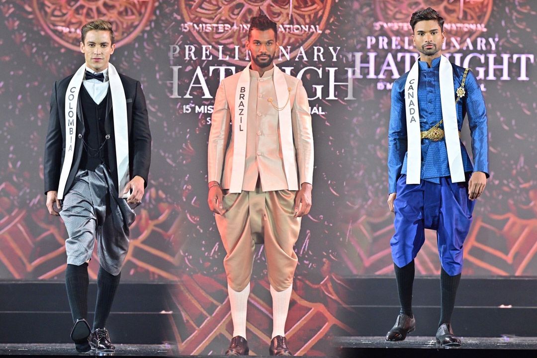 บรรยากาศภายในงานเปิดเวทีด้วยการพาเหรดในชุดประจำชาติพร้อมแนะนำตัวเองทีละชาติ เพียงแค่ชุดประจำชาติก็เรียกเสียงฮือฮาและเสียงปรบมือดังสนั่นลั่นห้องบอลรูม เพราะหนุ่มหล่อแต่ละคนต่างหอบชุดประจำชาติที่อลังการงานสร้างข้ามน้ำข้ามทะเล มาสวมใส่โชว์บนเวทีแห่งนี้โดยเฉพาะ ต้องบอกว่ามีการออกแบบสวยงาม แสดงถึงเอกลักษณ์ของประเทศนั้น ๆ ได้อย่างยอดเยี่ยม ไม่แพ้เวทีประกวดนางงามเลยทีเดียว