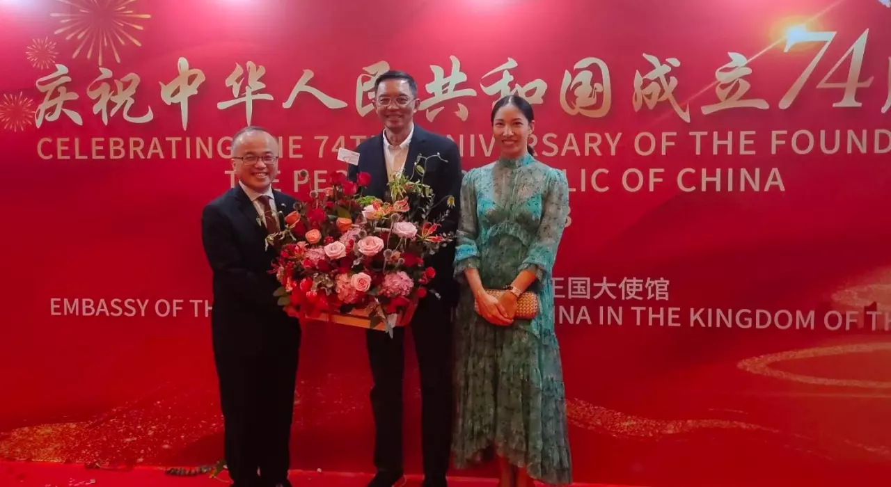 วานนี้ (20 ก.ย.66) สถานเอกอัครราชทูตสาธารณรัฐประชาชนจีนประจำประเทศไทย ได้จัดงานเฉลิมฉลองเนื่องในโอกาสครบรอบ 74 ปี วันสถาปนาสาธารณรัฐประชาชนจีน ที่โรงแรมแชงกรี-ลา โดยมีนายหาน จื้อเฉียง เอกอัครราชทูตสาธารณรัฐประชาชนจีนประจำประเทศไทย และภริยาเป็นประธานในงาน โดยนางสาวจิตสุภา วัชรพล เจ้าหน้าที่บริหารสายงานคอนเทนต์ สถานีโทรทัศน์ไทยรัฐทีวี และนายประณต วิเลปสุวรรณ ผู้อำนวยการฝ่ายบรรณาธิการ เป็นตัวแทนของเครือไทยรัฐ เดินทางไปร่วมแสดงความยินดี และมอบกระเช้าดอกไม้แด่ นายอู๋ จืออู อุปทูตของสถานเอกอัครราชทูตจีนด้วย