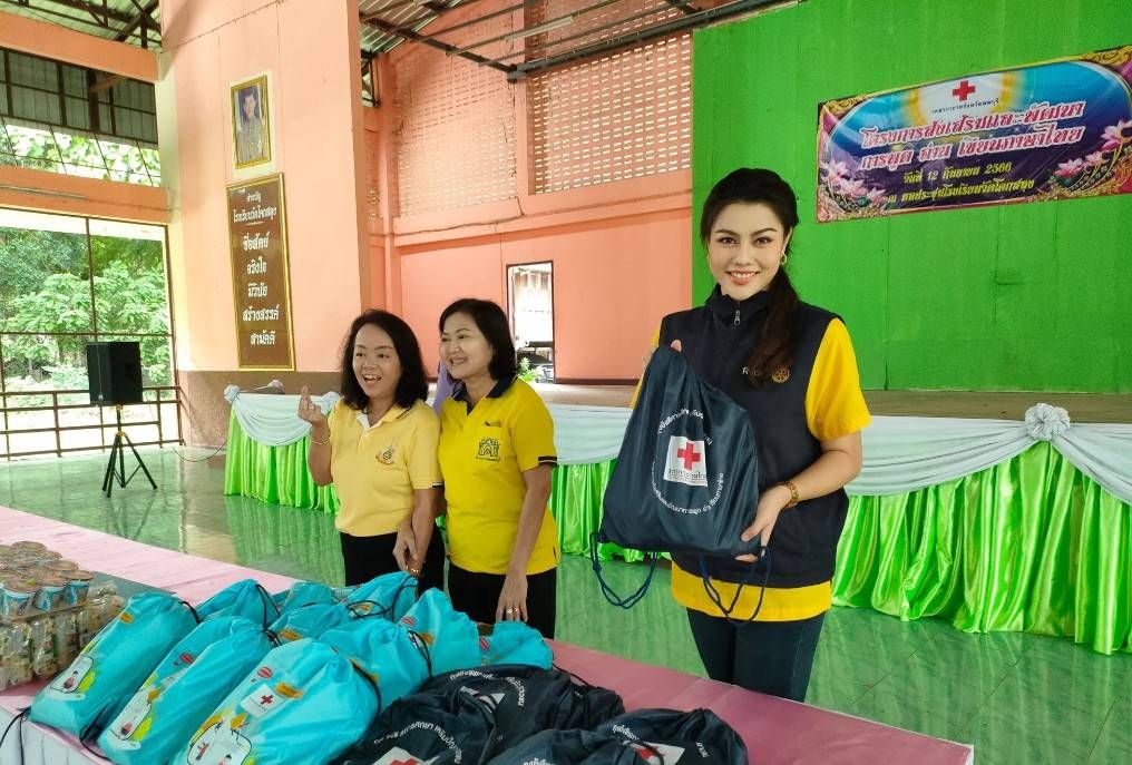 พร้อมด้วยนางงามรักเด็ก อย่าง“แอมมี่ สุนีพร เจริญชัย”Elite – MRS.THAILAND WORLD 2023ร่วมลงพื้นที่โรงเรียนวัดโคกสลุง ต.โคกสลุง อ.พัฒนานิคม,โรงเรียนอนุบาลพัฒนานิคม จ.ลพบุรี เพื่อตรวจเยี่ยม พบปะ และมอบถุงยังชีพทางการศึกษา ให้กับคณะครู นักเรียน ในกลุ่มเป้าหมาย ตามโครงการส่งเสริมทักษะและพัฒนาการเขียนอ่าน พูด ภาษาไทย ปีการศึกษา 2566เพื่อเป็นการขับเคลื่อนโครงการส่งเสริมและพัฒนาการ ในพื้นที่จังหวัดลพบุรี สนองพระราชดำริ สมเด็จพระกนิษฐาธิราชเจ้า กรมสมเด็จพระเทพรัตนราชสุดาฯ สยามบรมราชกุมารี อุปนายิกา ผู้อำนวยการสภากาชาดไทย ในการแก้ไขปัญหาการอ่านไม่ออกเขียนไม่ได้ของเด็กนักเรียนในถิ่นทุรกันดาร โดยมุ่งเน้นให้ เด็กนักเรียนชั้นประถมศึกษาปีที่ 1 – 6 ที่อ่านไม่ออกเขียนไม่ได้ สามารถพัฒนาทักษะของตนเองจนนำไปสู่การอ่านออกและเขียนได้ในที่สุด