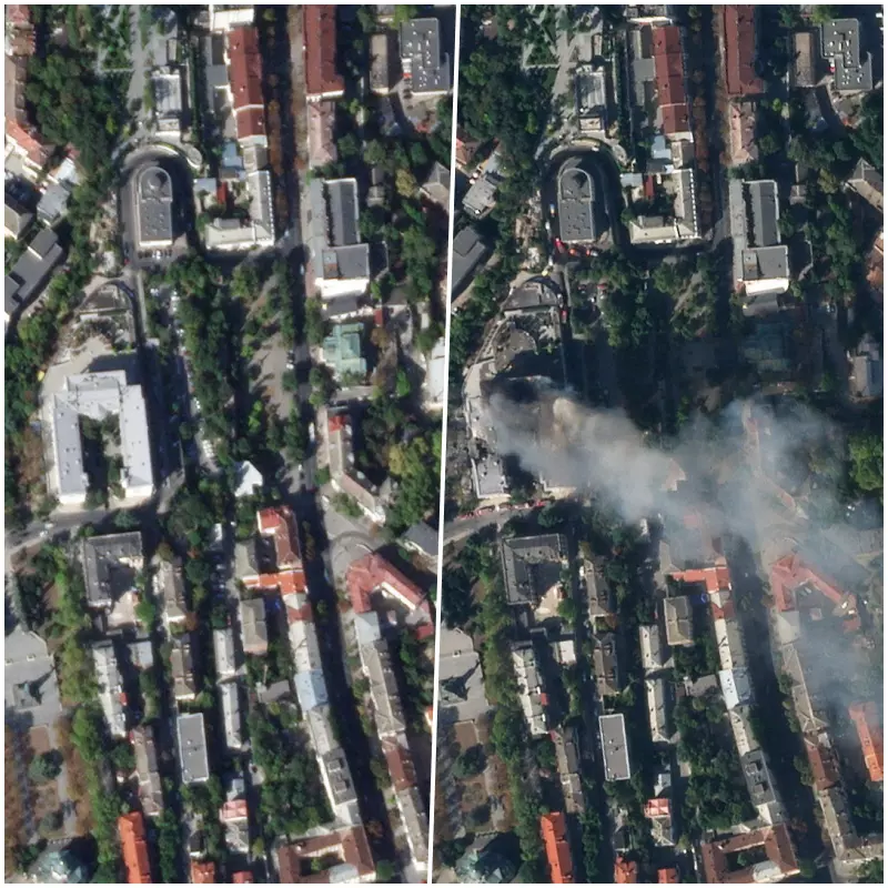 มีคลิปวิดีโอใหม่ถูกเผยแพร่ทางโซเชียลมีเดีย แสดงให้เห็นเหตุการณ์ที่ศูนย์บัญชาการกองทัพเรือในแคว้นไครเมียถูกโจมตีด้วยขีปนาวุธอย่างรุนแรง จนได้ยินเสียงระเบิดดังสนั่น ควันดำทะมึนพวยพุ่งอย่างน่าสะพรึงกลัว สร้างความตื่นตระหนกให้แก่ประชาชนที่เห็นเหตุการณ์