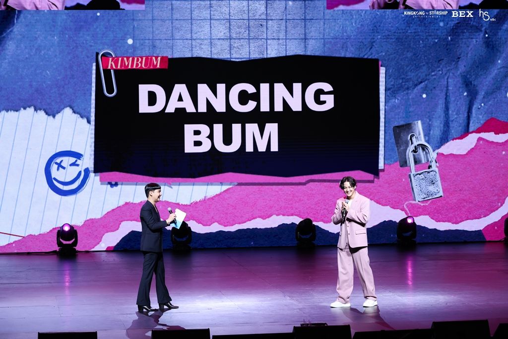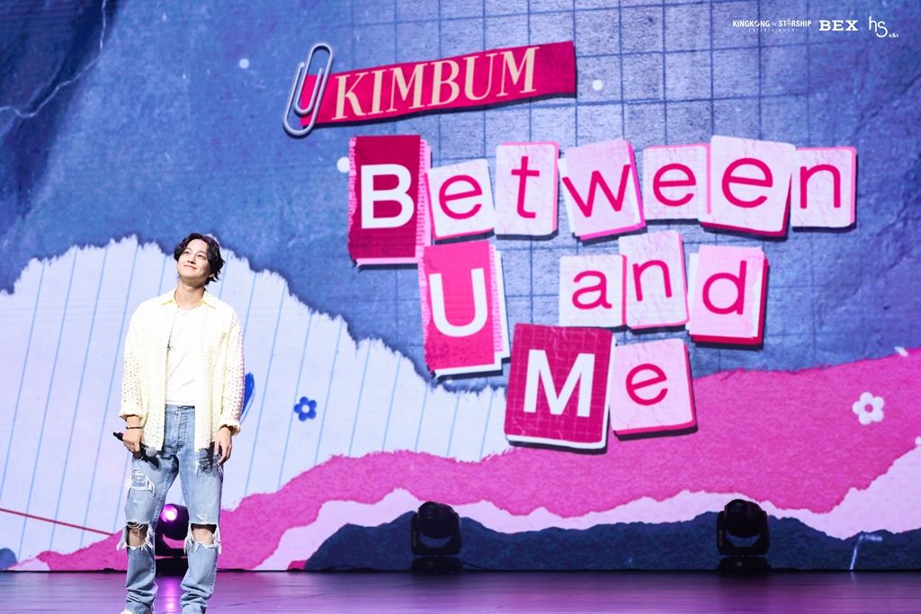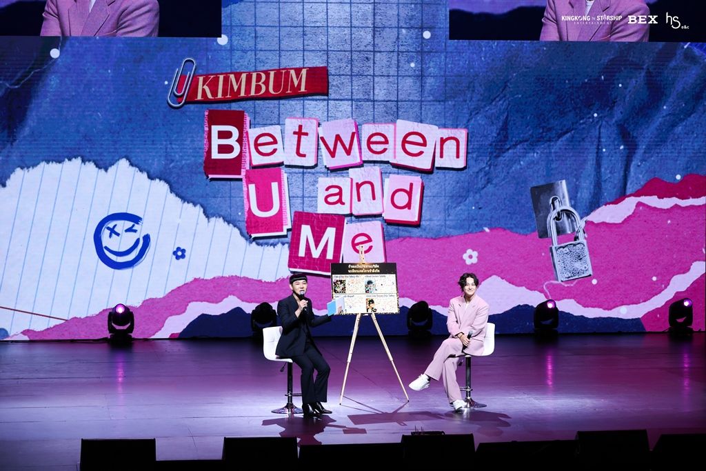 โดยเปิดโชว์ด้วยการแสดงสุดพิเศษกับบทเพลง “Wind Song, Kiss The Rain” เพลงประกอบซีรีส์ “Tale of the Nine Tailed 1938” ที่ประสบความสำเร็จไปทั่วทั้งเอเชีย โดยคิมบอมได้กล่าวทักทายแฟน ๆ ชาวไทยด้วยข้อความภาษาไทยสุดน่ารัก “สวัสดีครับ ผมคิมบอมครับ ทุกคนสบายดีไหมครับ ผมคิดถึงทุกคนมาก ๆ เลย วันนี้เรามาสร้างความทรงจำดี ๆ ที่ยากจะลืมเลือนไปด้วยกันนะครับ Between U and Me เริ่มต้น ณ บัดนี้” โดยในงานได้แบ่งออกเป็น 2 พาร์ท ครึ่งแรกของการแสดง ประกอบไปด้วย ช่วงที่ 1 “BUM’s UPDATE” ช่วงที่จะทำให้แฟน ๆ ได้รู้ทุกเรื่องราวที่เกี่ยวกับคิมบอมมากยิ่งขึ้น ผ่านคำคีย์เวิร์ดต่าง ๆ ช่วงที่ 2 “2023 KIM BUM AWARDS BANGKOK FAN” รางวัลสาขาต่าง ๆ ที่คิดมาเพื่อแฟนชาวไทยโดยเฉพาะ! และ ช่วงที่ 3 “DANCING BUM” โดยให้แฟน ๆ ได้มีส่วนร่วมช่วยกันตอบคำถาม และคิมบอมถูกลงโทษด้วยการเต้นเพลงฮิต K-POP สุดน่ารักอย่างเพลง NewJeans – Super Shy , IVE- After LIKE และ LE SSERAFIM – Eve, Psyche & The Bluebeard’s wife