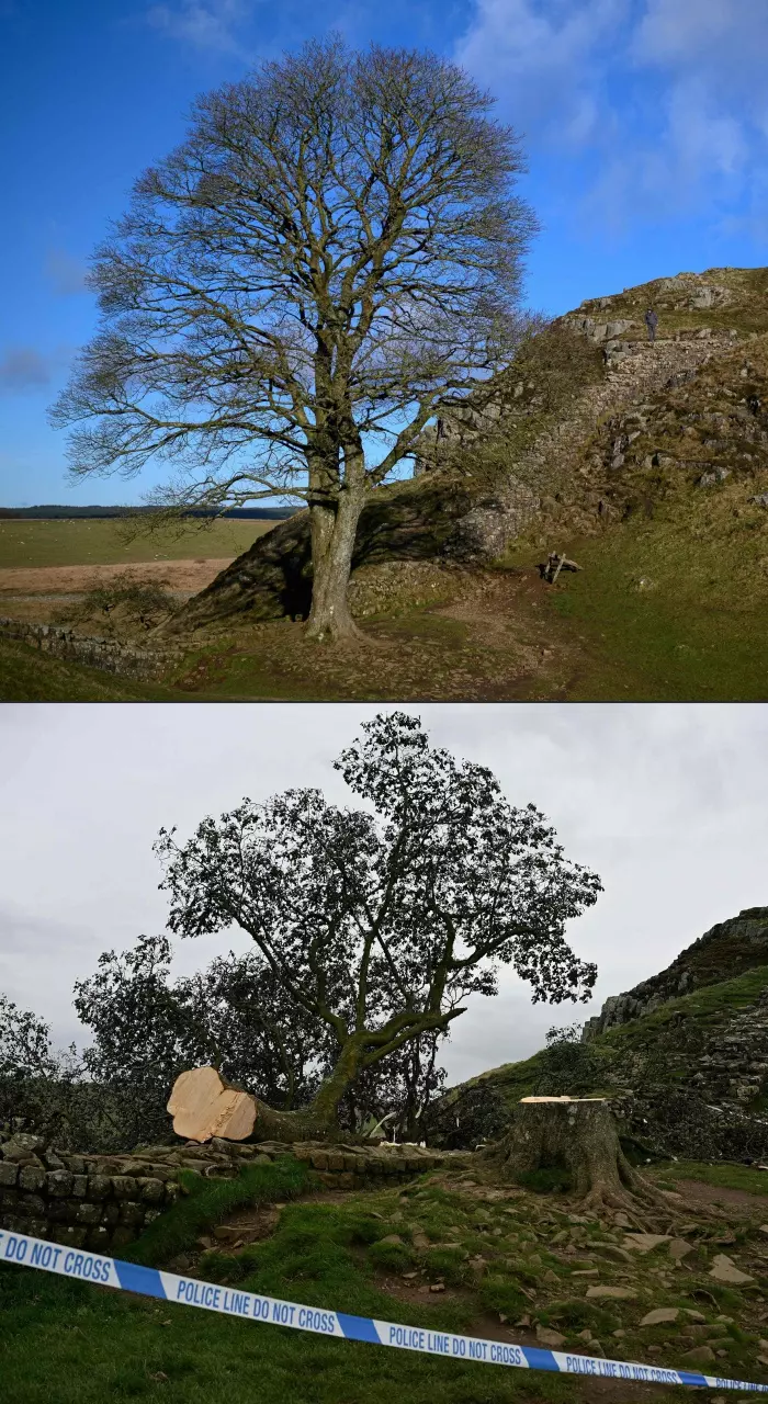 เด็กชายวัย 16 ปี ชาวอังกฤษ ถูกตำรวจจับกุมดำเนินคดี หลังก่อเหตุโค่นต้นไม้อายุเกือบ 200 ปี อันเป็นสัญลักษณ์สำคัญ ของกำแพงโบราณ “เฮเดรียน วอลล์” แหล่งท่องเที่ยวชื่อดังทางตอนเหนือของอังกฤษ ในเมืองนอร์ธัมเบรีย จนเกิดกระแสความโกรธแค้นของประชาชนในพื้นที่รวมทั้งนักอนุรักษ์