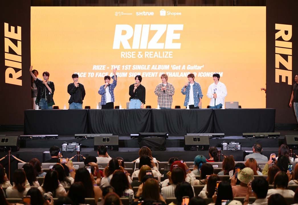 ยิ่งไปกว่านั้น แม้งานนี้จะเป็นการมาเยือนประเทศไทยเป็นครั้งแรกนับตั้งแต่เดบิวต์ แต่ “RIIZE” (ไรซ์) ก็ได้รับการต้อนรับอย่างร้อนแรงจากผู้ร่วมงานจนเต็มความจุของ สุราลัย ฮอลล์ กว่า 1,200 คน ในงานนี้ พวกเขาได้ให้สัมภาษณ์ในงานแถลงข่าวพร้อมแนะนำตัวและแบ่งปันหลากหลายเรื่องราว ที่ทำให้ทุกคนได้รู้จักกันมากขึ้น เริ่มด้วยความรู้สึกที่ได้มาประเทศไทย, ซิงเกิ้ลอัลบั้มแรก “Get A Guitar”, ความสำเร็จที่โดดเด่น, เป้าหมายในอนาคต ไปจนถึงการโชว์ท่าเต้นที่เรียกเสียงกรี๊ดถล่มทลายจากแฟนๆ ก่อนจบช่วงงานแถลงข่าว ได้เรียนเชิญคุณ JUNGMIN CHOI (จองมิน ชเว) ประธานเจ้าหน้าที่บริหาร CEO บริษัท เอสเอ็ม ทรู จำกัด และ Chief Global Officer ของ SM Entertainment,คุณอลิสา บัวแก้ว Partnership Manager at Shopee (Thailand), คุณเทพ สินธวานนท์ รองประธานเจ้าหน้าที่ บริหารสายปฏิบัติการ บริษัท เอสเอ็ม ทรู จำกัด และ คุณกรณิศพุ่มวิเศษ Head of Strategy & Special Projects at Shopee (Thailand) ถ่ายภาพที่ระลึกร่วมกันบนเวที