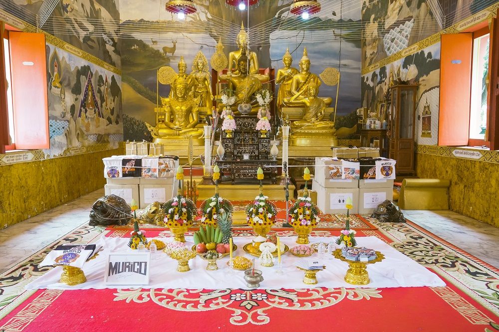 คุณกัญญภัทร สุขสมาน ผู้อำนวยการหน่วยกลยุทธอีเวนต์และการตลาดออนไลน์ บริษัท โมโน ไซเบ้อร์ จำกัด และคุณปัณณวิชญ์ โพธารากุล หัวหน้าฝ่ายออกแบบผลิตภัณฑ์ บริษัทโมโน ไซเบ้อร์ จำกัดพร้อมด้วยทีมงาน และนักแสดง มุก–พิชานา อยู่สุข และ นีน–ชัชชญา สำเริงราชย์ จากซีรีส์ ฟางเล่นไฟรวมถึง คุณอ๊อฟ–พงษ์พัฒน์ วชิรบรรจง ผู้กำกับชื่อดัง ร่วมในพิธีพุทธาภิเษก เสื้อยืดแนวสตรีทแฟชั่น-สายมูแบรนด์Murico (มูริโค)ในคอลเลคชั่น“Fear Ends”เสื้อยืด 4 แบบ พร้อมหมวก 3 แบบ ที่มีความหมายดี ๆ ในการช่วยส่งเสริมเรื่องความเเคล้วคลาดปลอดภัย เสริมกำลังใจให้มีความกล้าหาญ อำนาจ และสติปัญญาในการเเก้ไขปัญหาต่างๆ ซึ่งมียันต์ที่ออกแบบโดยหลวงพ่อกำไรพระครูโกวิทสุตการณ วัดโคกเขมาอำเภอนครชัยศรี จังหวัดนครปฐม เมื่อวันก่อน