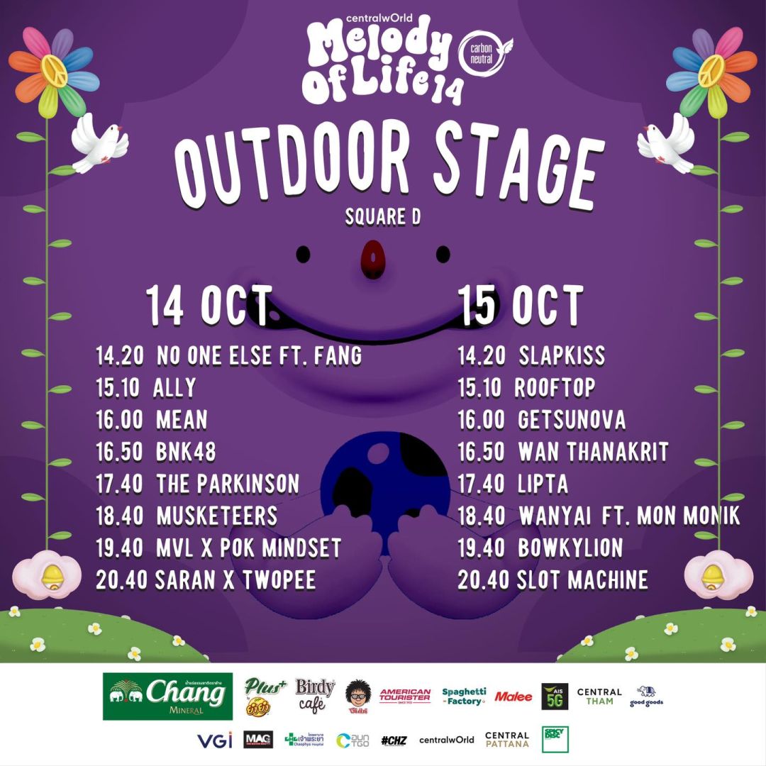 เตรียมตัวรับแรงกระแทกแบบสนุกสุดมันกับเทศกาลดนตรีที่รักโลกอีเว้นท์ดนตรีของไทยที่รับผิดชอบต่อการปล่อยก๊าซเรือนกระจก Carbon Neutral Event พบกับความยิ่งใหญ่ใจกลางเมืองMelody Of Life 14 (เมโลดี้ออฟไลฟ์ 14)มหกรรมที่รวบรวมเอาทุกความสนุกมารวมไว้ในที่เดียวและยังได้ชมฟรีคอนเสิร์ตจากศิลปินหลากหลายค่ายและจากค่ายเพลงสีเขียวสไปร์ซซี่ดิสก์ (SPICYDISC)ร่วมกับศูนย์การค้าเซ็นทรัลเวิลด์โดยจัดต่อเนื่องเข้าสู่ปีที่ 14 แล้วซึ่งยังคงคอนเซ็ปรักโลกไว้เช่นเดิมเพิ่มเติมคือเข้มข้นขึ้นด้วยการจัดกิจกรรมชดเชยคาร์บอนที่เกิดจากการจัดงานให้เป็นศูนย์ โดยการจัดหาคาร์บอนเครดิตจากโครงการลดก๊าซเรือนกระจกมาชดเชยก๊าซเรือนกระจกที่ปล่อยจากกิจกรรมในการจัดอีเว้นท์หรือที่เรียกว่าคาร์บอนนิวทรัล (Carbon Neutral)และใส่ใจสิ่งแวดล้อมด้วยการใช้วัสดุรีไซเคิลในการจัดงานและการจัดให้มีการแยกขยะที่ถูกต้อง แถมยังให้ทุกคนได้ร่วมรักโลกไปด้วยกันกับกิจกรรมสกรีนเสื้อโลโก้ศิลปินในวันงาน หรือพรีออร์เดอร์ได้ล่วงหน้าในราคาตัวละ 250 บาท โดยรายได้จะนำไปปลูกป่าร่วมกับมูลนิธิเพื่อสิ่งแวดล้อม