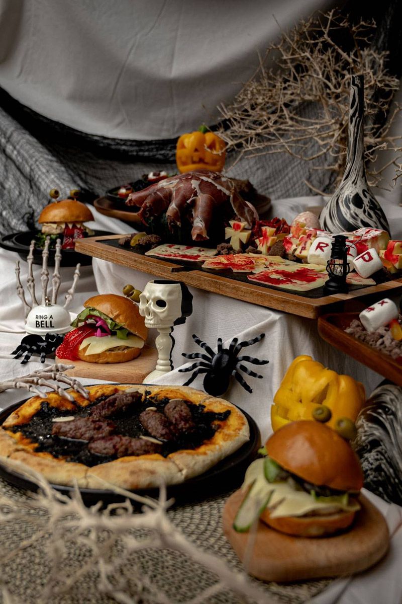 อีกทั้ง ยังสามารถเพลิดเพลินไปกับซูชิ ซาซิมิสดใหม่และอีกมากมายที่สเตชั่นอาหารญี่ปุ่น หรือจะเป็นอาหารอิตาเลียนที่สเตชั่นพาสต้า และยังมีเมนูจานร้อนพร้อมข้าวสวยสำหรับผู้ที่หลงใหลอาหารไทย รวมไปถึงเนื้อย่างและอาหารทะเลที่เชฟปรุงให้สดๆและสามารถสั่งตามชอบ ไม่เพียงแค่นั้นปิดท้ายค่ำคืนสุดหลอนด้วยเมนูของหวานในธีมฮาโลวีน อาทิ มูสช็อกโกแลต RIP พุดดิ้งดินป่าช้า ฟองดูช็อคโกแลตอาบเลือด เป็นต้น