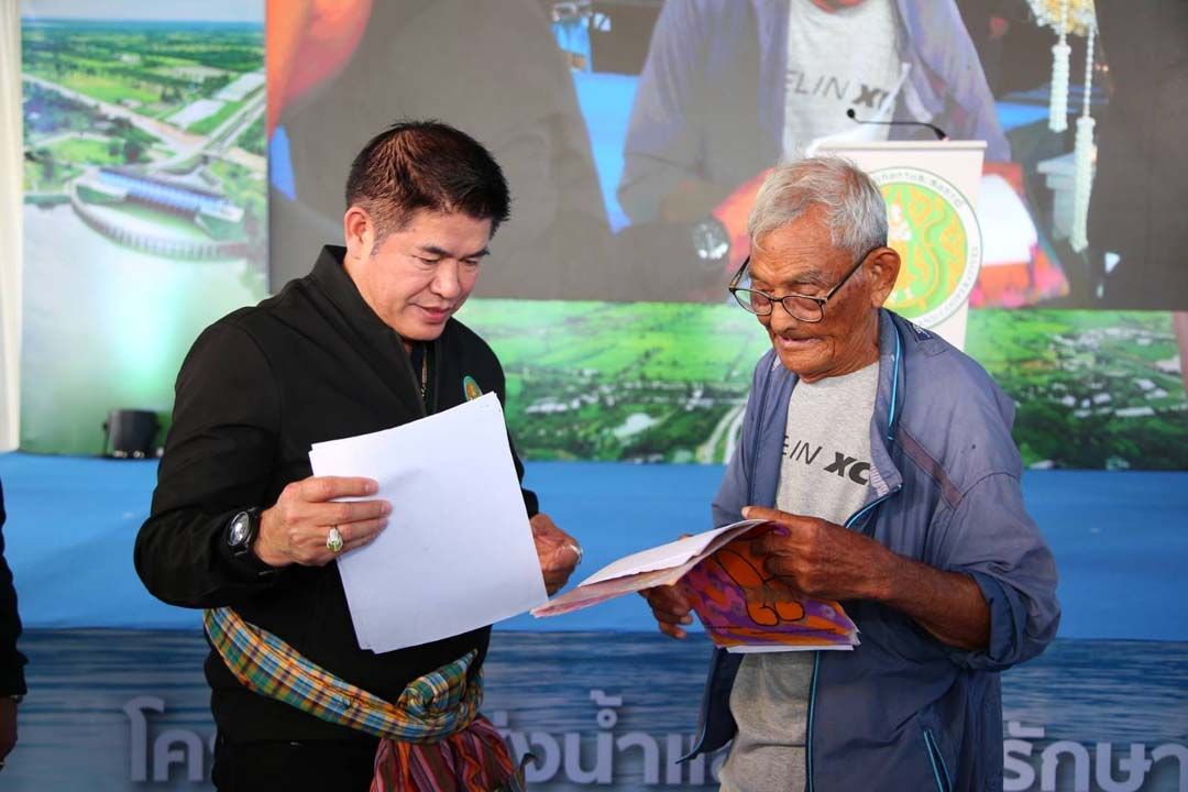 จากนั้นรัฐมนตรีว่าการกระทรวงเกษตรและสหกรณ์ได้เดินทางไปยังหอประชุมรัตนโกสินทร์ (ศาลาประชาคมอำเภอสทิงพระ) ที่ว่าการอำเภอสทิงพระ จ.สงขลา เพื่อรับฟังปัญหาของประชาชนในพื้นที่ พร้อมมอบแนวทางการแก้ไขปัญหา ทั้งนี้ ได้มีการมอบหนังสืออนุญาตให้เข้าทำประโยชน์ในเขตปฏิรูปที่ดิน (ส.ป.ก. 4-01) จำนวน 30 ราย มอบปัจจัยการผลิต ได้แก่ ชุดผลิตภัณฑ์เทคโนโลยีชีวภาพของกรมพัฒนาที่ดิน จำนวน 250 ชุด ชุดปัจจัยการผลิตพืช (ต้นกล้ามะเขือและสารชีวภัณฑ์) จำนวน 20 ชุด และข้าวสาร จำนวน 200 ชุด มอบเงินอุดหนุนโครงการส่งเสริมการผลิตหัวเชื้อจุลินทรีย์เพื่อการเพาะเลี้ยงกุ้งทะเล และเยี่ยมชมนิทรรศการความสำเร็จของโครงการพัฒนาพื้นที่ลุ่มน้ำปากพนังอันเนื่องมาจากพระราชดำริ และสินค้าของเกษตรกรในพื้นที่